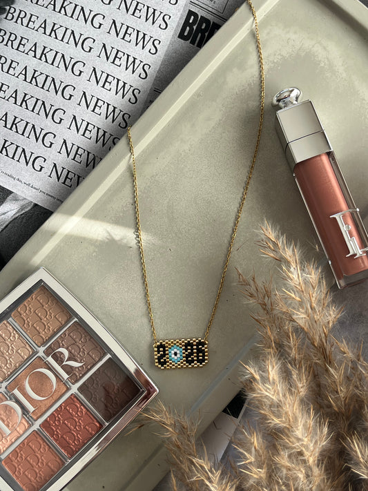 Κολιέ Ατσάλινο Κεντητό Γούρι '26 με Ματάκι