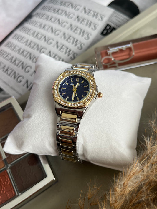 Ρολόι Ατσάλινο με Στρόγγυλο Μπλε Καντράν και Ζιργκόν 'Ayanna'