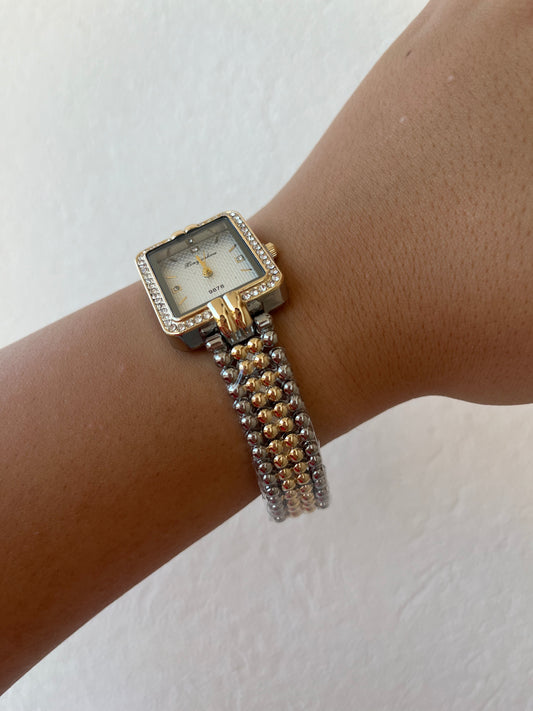 Ρολόι Ατσάλινο με Τετράγωνο Κυπαρισσί Καντράν και Ζιργκόν 'Night Life'