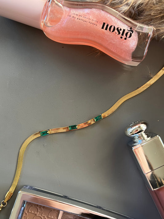 Βραχιόλι Ατσάλινο Αλυσίδα Φίδι με Σμαραγδί Πέτρες 'Mesh'