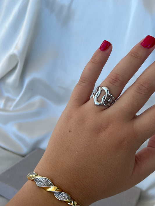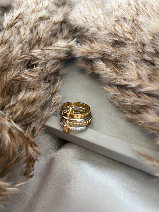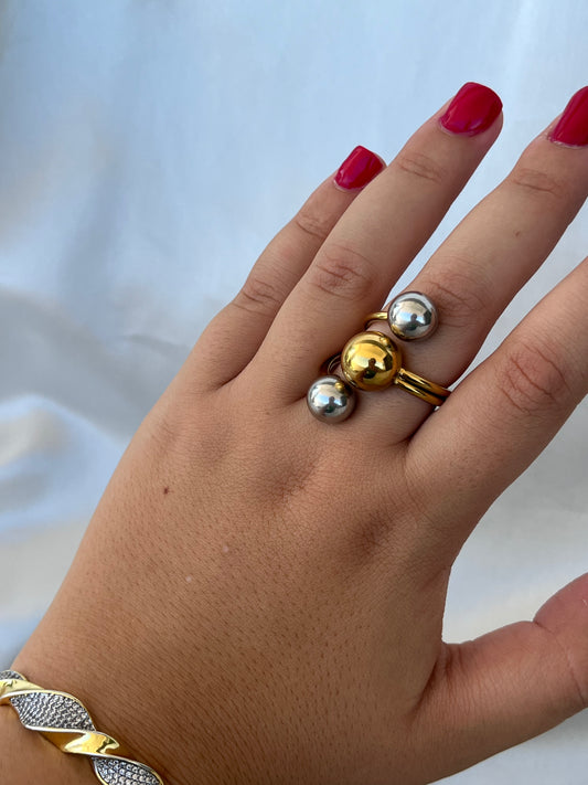 Δαχτυλίδι Ατσάλινο Statement Δίχρωμο με Μπίλιες 'Zamora'