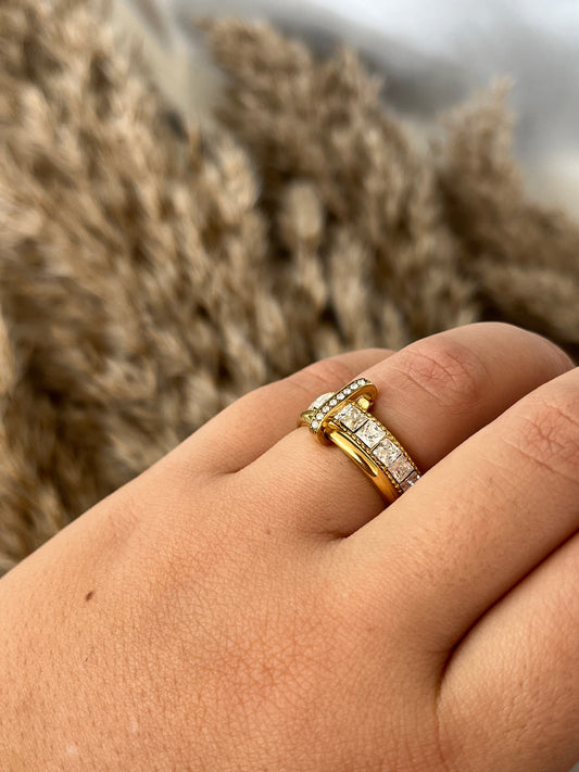 Δαχτυλίδι Ατσάλινο με Πολλαπλά Στρώματα και Ζιργκόν 'Raye'