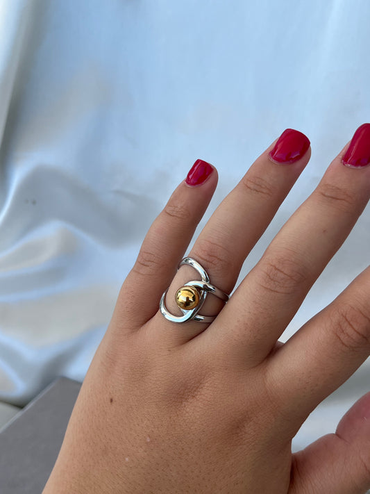 Δαχτυλίδι Ατσάλινο Δίχρωμο με Μπίλια 'Orla'