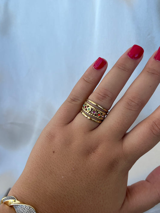 Δαχτυλίδι Ατσάλινο με Πολύχρωμα Ζιργκόν 'Bohemian Glam'