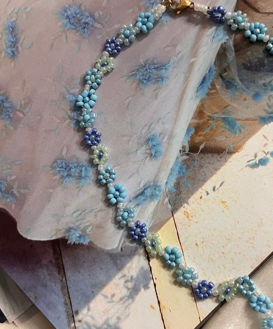 Κολιέ Ατσάλινο με Χάντρες "Blue Daisies" – Ρομαντικό & Φρέσκο Στυλ