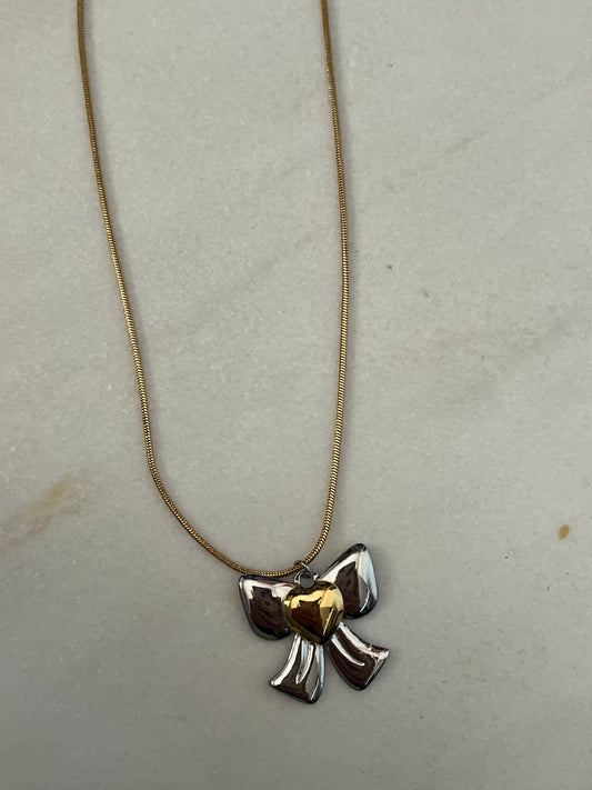 Ατσάλινη Αλυσίδα Λαιμού με Καρδιά 'Love Knot'