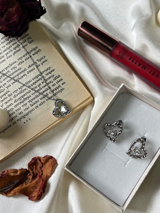 Κολιέ Ατσάλινο Αλυσίδα με Καρδιά και Ζιργκόν 'Aurora'