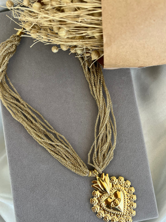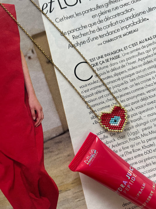 HEART &EYE – Κολιέ από Ανοξείδωτο Ατσάλι με Κεντητό Ματάκι & Καρδιά