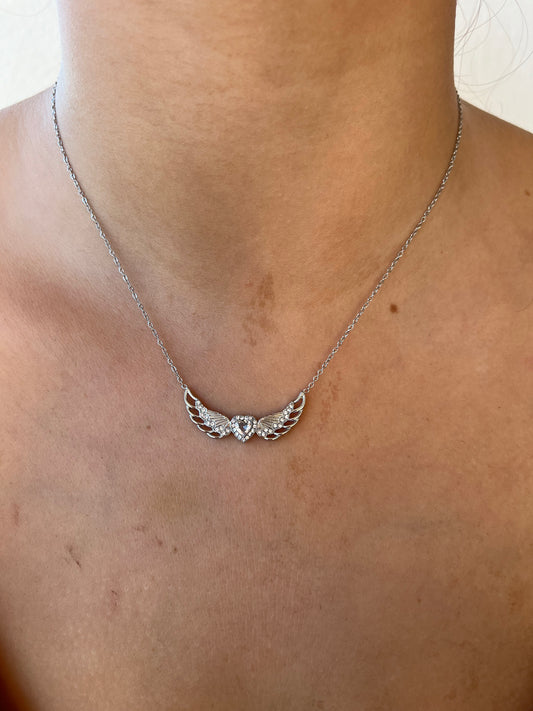 Κολιέ Ατσάλινο Αλυσίδα με Ζιργκόν και Φτερά 'Sailor Moon Wings'