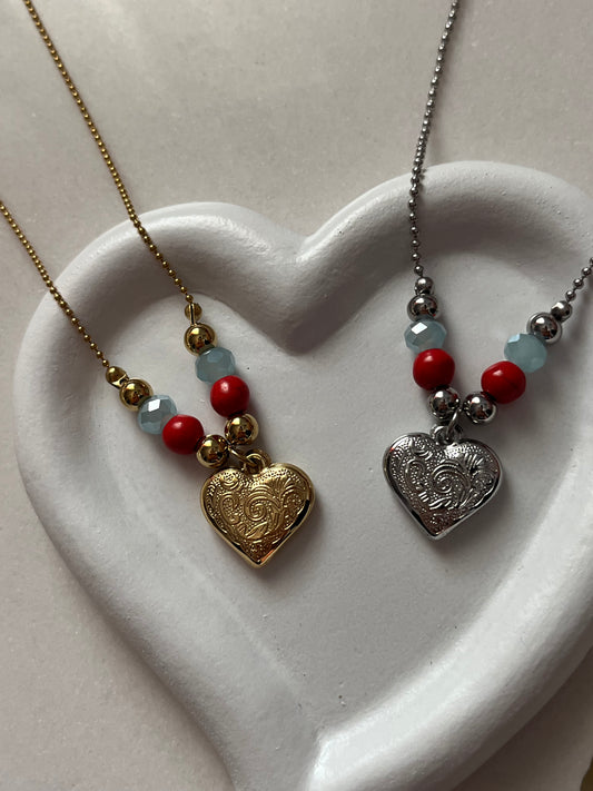 Κολιέ Ατσάλινο Αλυσίδα 'Καρδιά' με Χάντρες