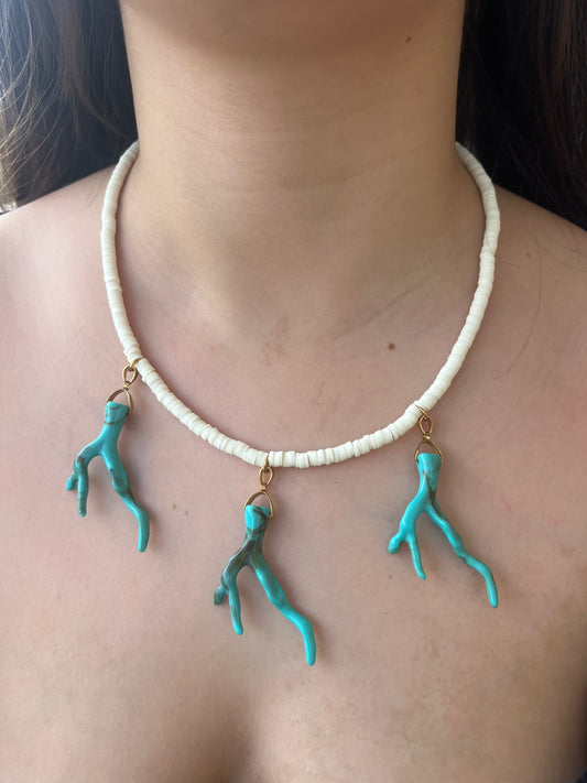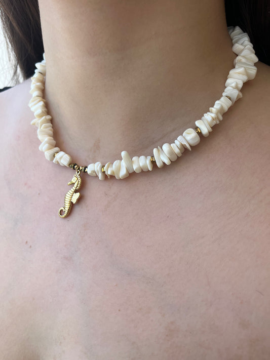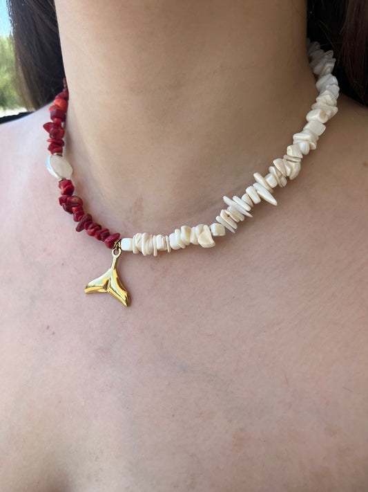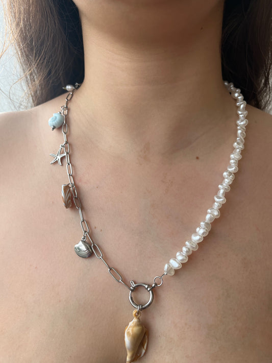 Κολιέ Χειροποίητο Ατσάλινο με Χάντρες και Θαλασσινά Στοιχεία 'Merlia'