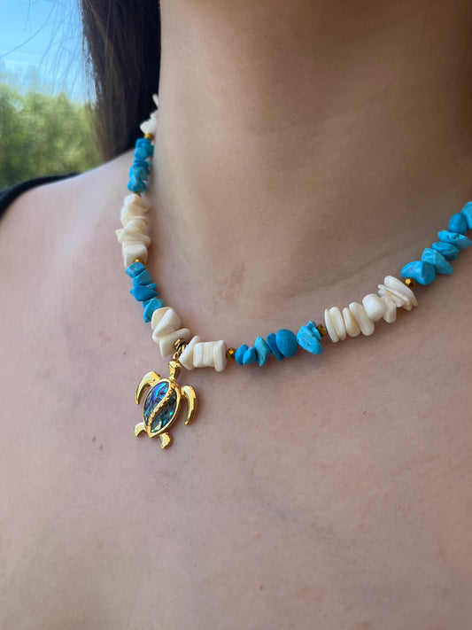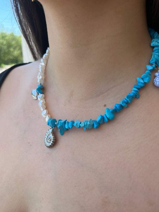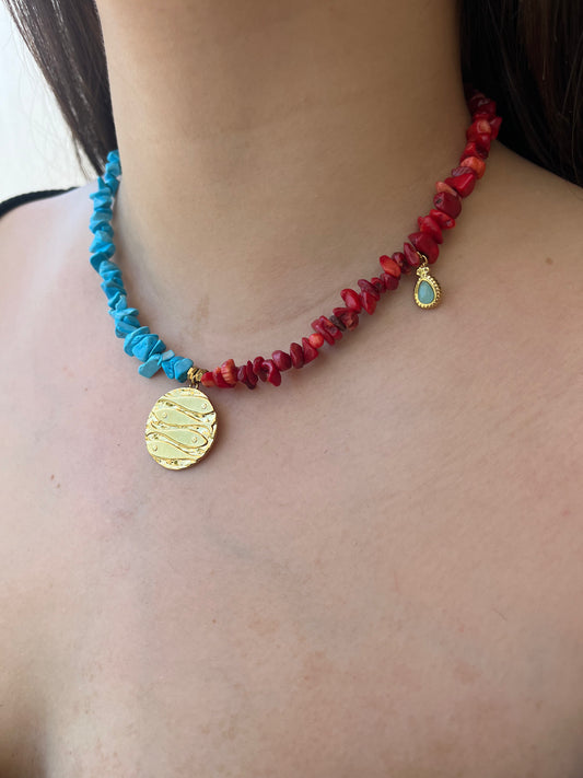 Κολιέ Χειροποίητο Ατσάλινο με Ημιπολύτιμες Χάντρες 'Salty'