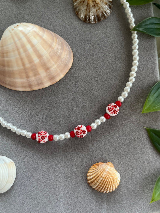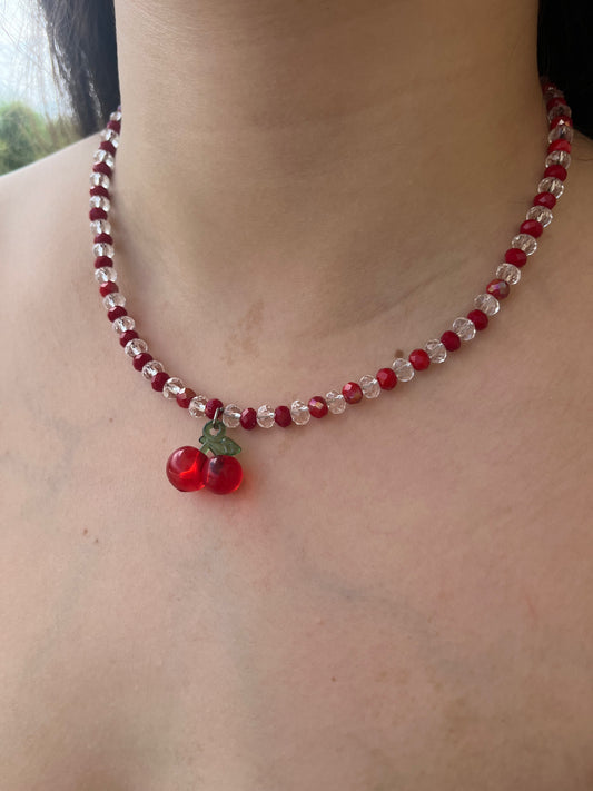 Κολιέ Χειροποίητο Ατσάλινο με Χάντρες 'Cherry'