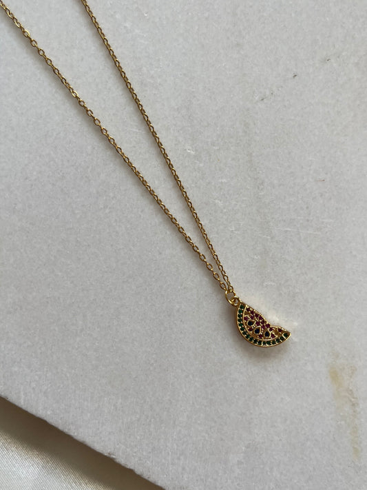 Κολιέ Ατσάλινο Αλυσίδα με Ζιργκόν 'Watermelon'