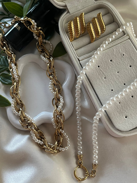Κολιέ Ατσάλινο Αλυσίδα με Πέρλες 'Ambrosia'