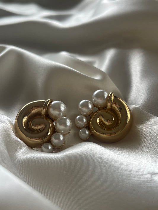 Σκουλαρίκια Ατσάλινα Καρφωτά 'Vintage Snail' με Πέρλες