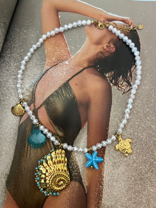 Κολιέ Statement Ατσάλινο με Πέρλες και Charms 'Summer Wonder'