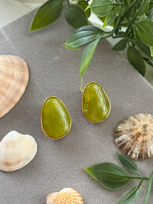 Σκουλαρίκια Ατσάλινα Καρφωτά Vintage με Πέτρα 'Honey'