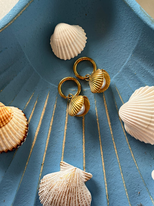 PEARL SHELL – Stainless Steel Hoop Earrings with Shell & Pearl
