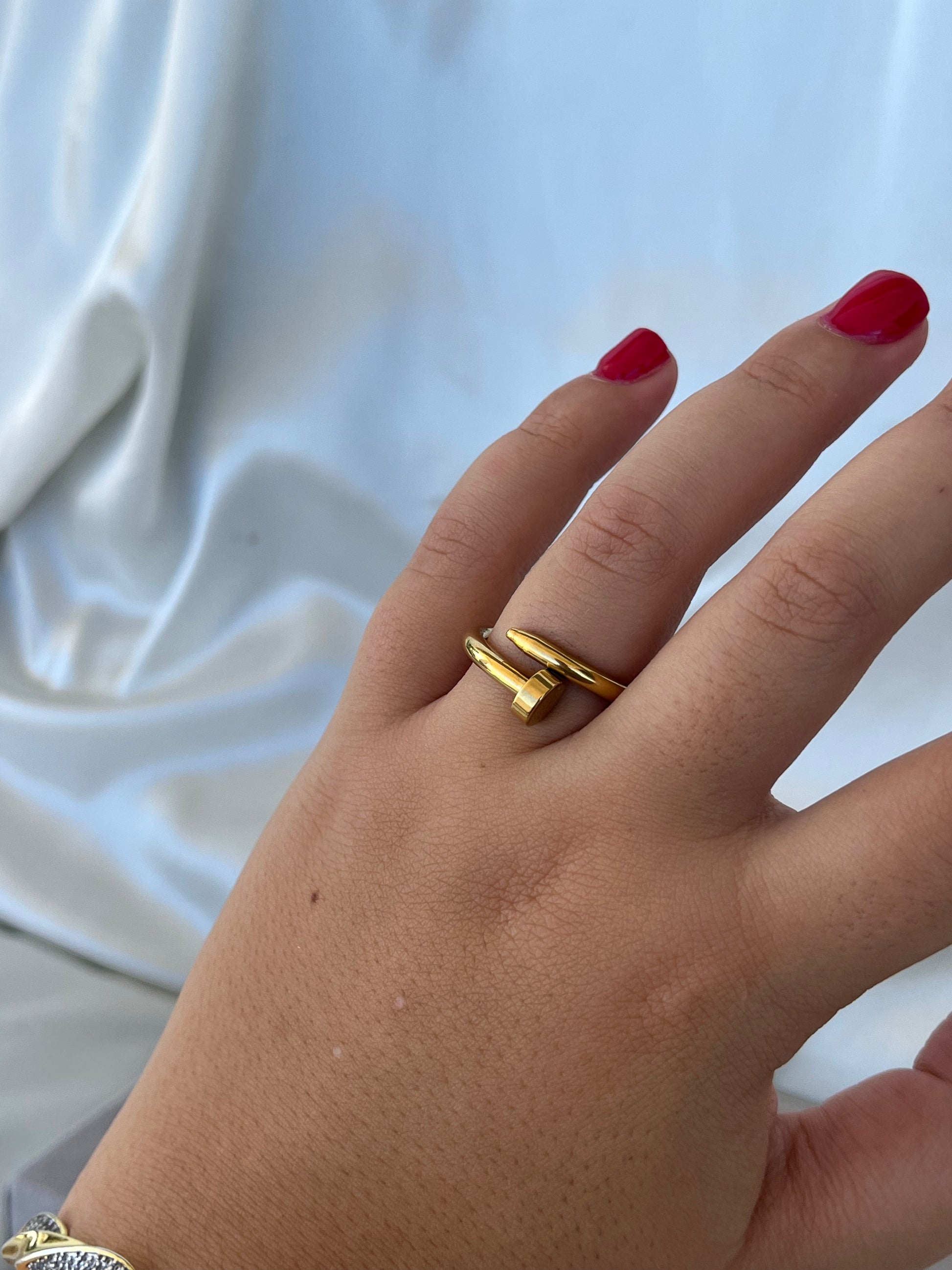 Women's ring with a nail design made of stainless steel.
