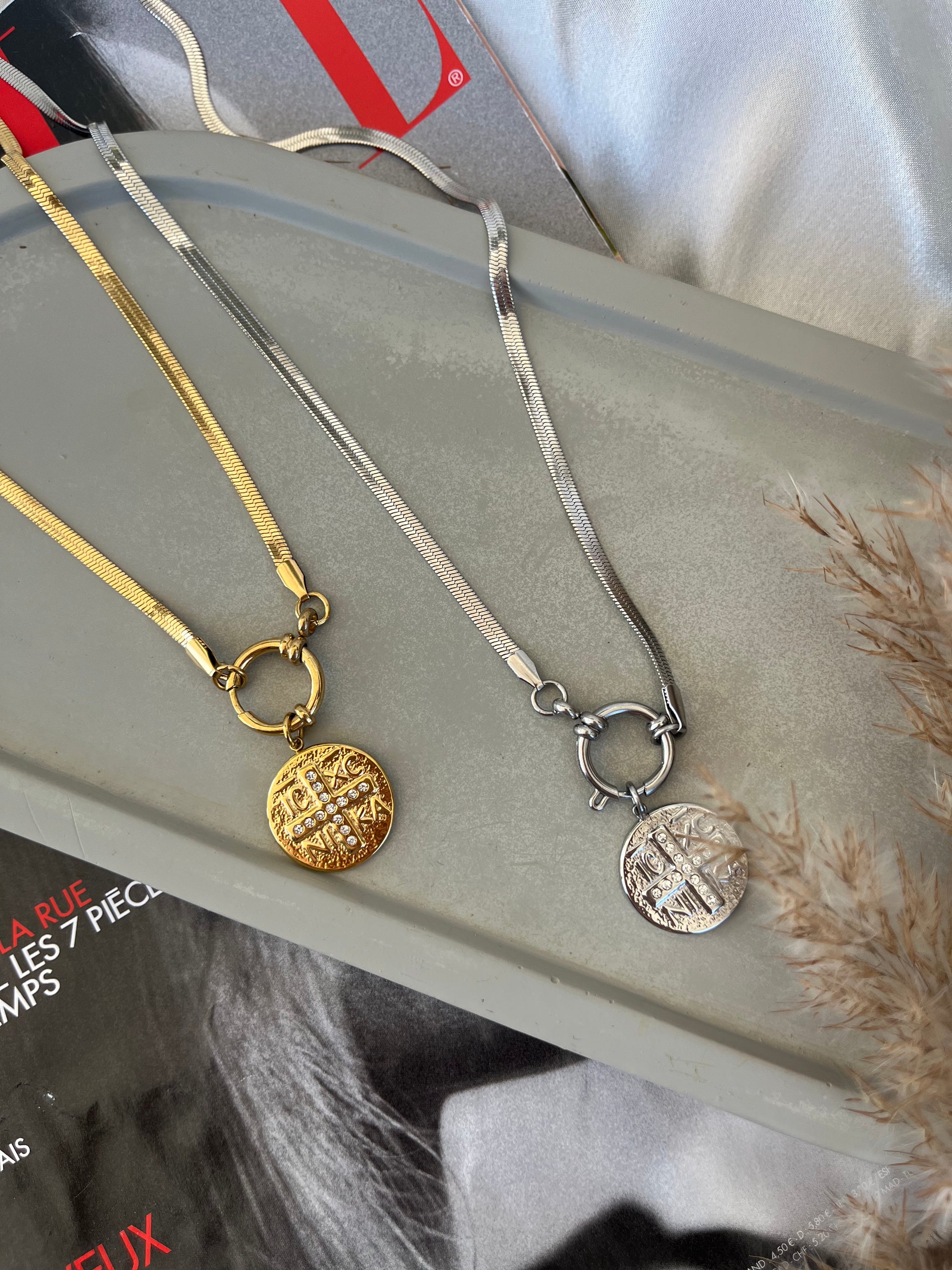 Κολιέ Ατσάλινο Κωσταντινάτο με Αλυσίδα Φίδι και Κλειδαριά