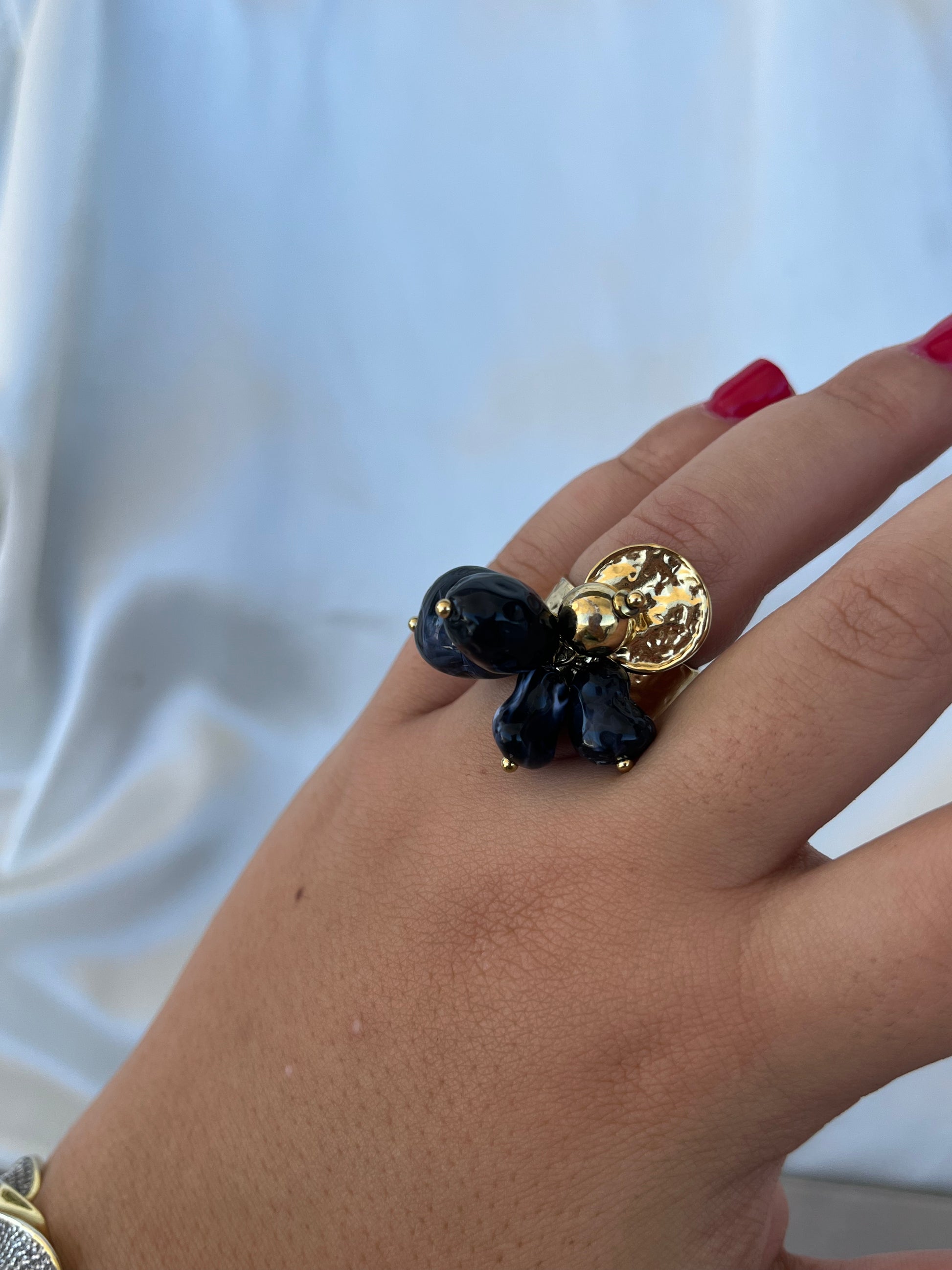 Γυναικείο δαχτυλίδι με δυνατότητα αυξομείωσης από ανοξείδωτο ατσάλι και charms.