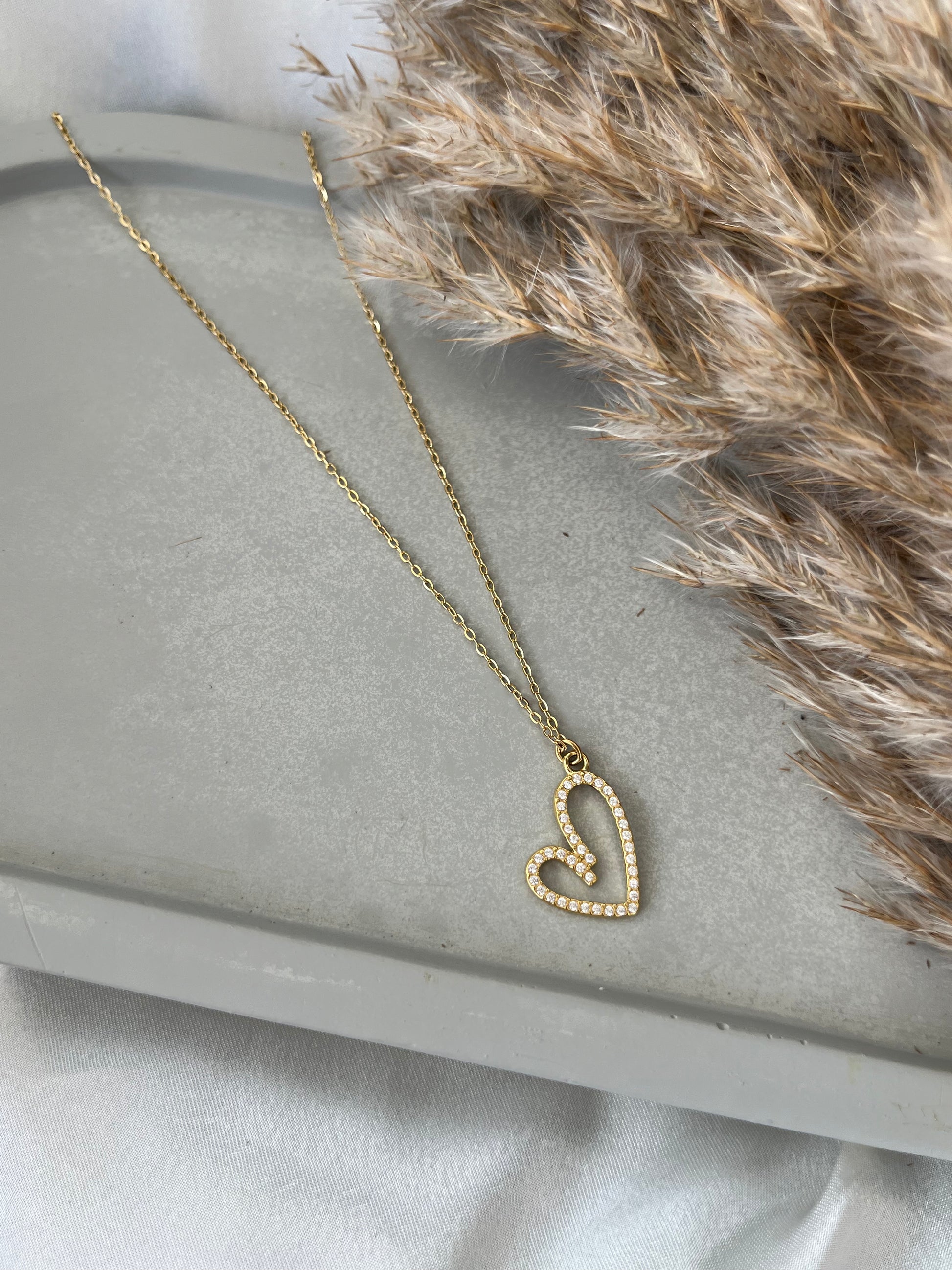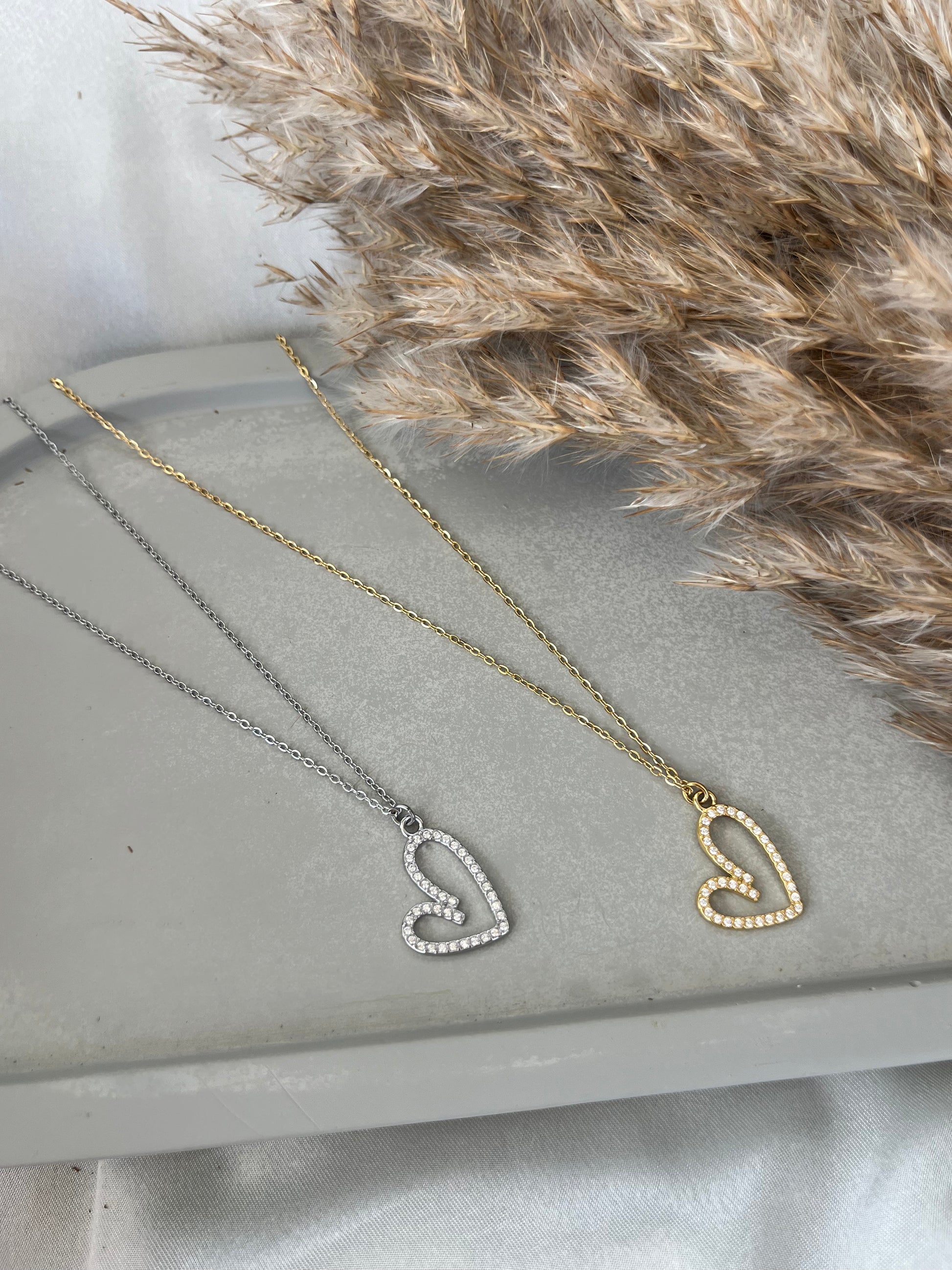 Γυναικείο κολιέ με λεπτή αλυσίδα και σχέδιο καρδιάς διακοσμημένης με ζιργκόν από ανοξείδωτο ατσάλι.