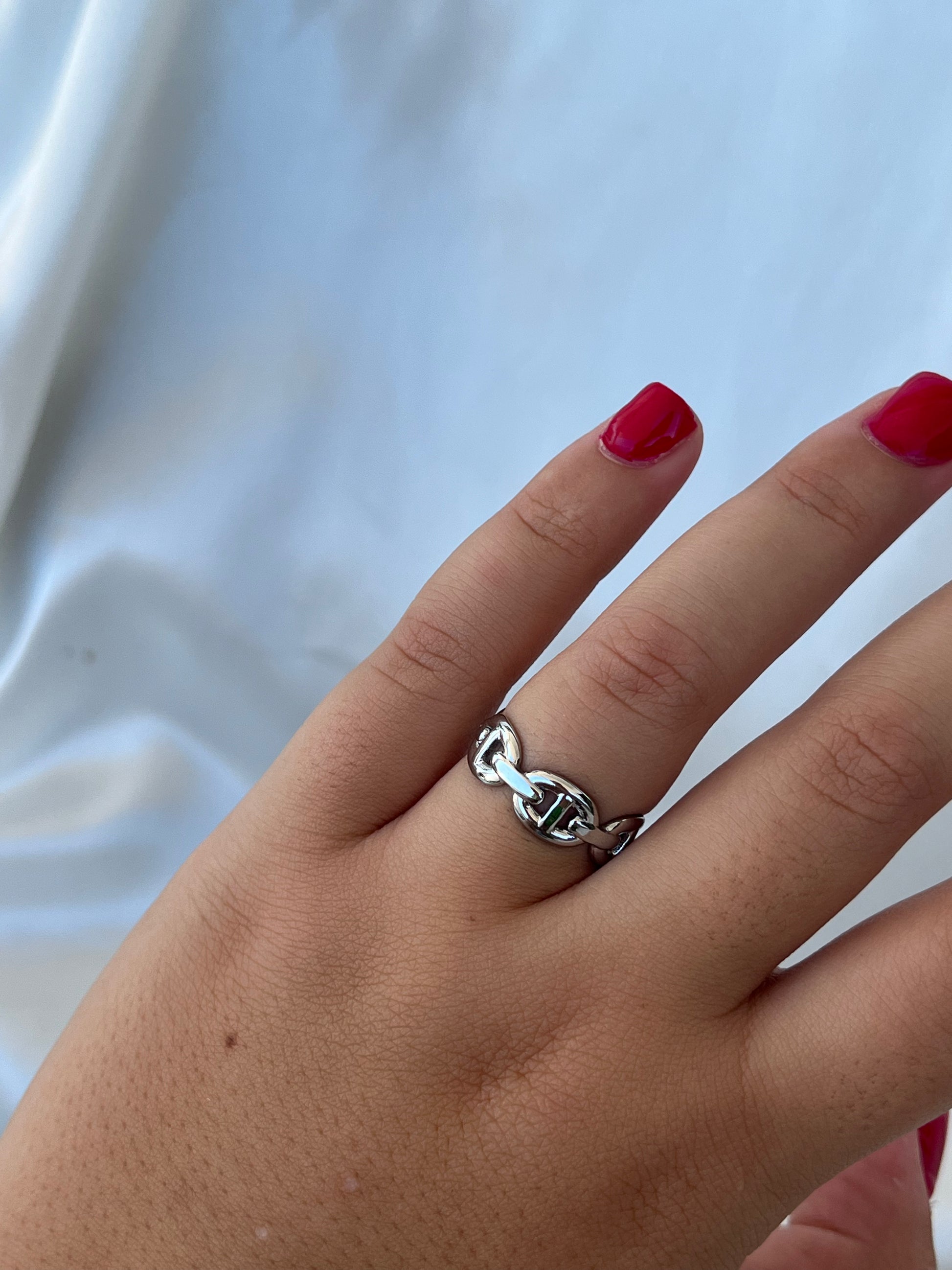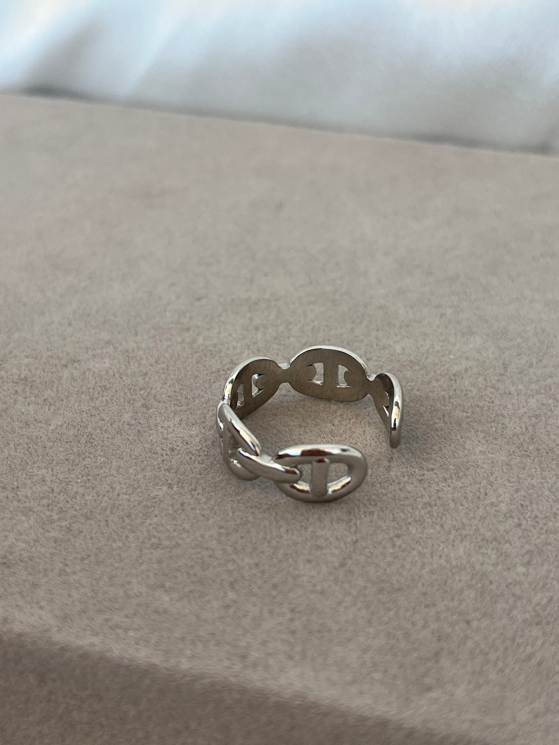 Γυναικείο δαχτυλίδι με σχέδιο αλυσίδας από ανοξείδωτο ατσάλι με δυνατότητα αυξομείωσης.