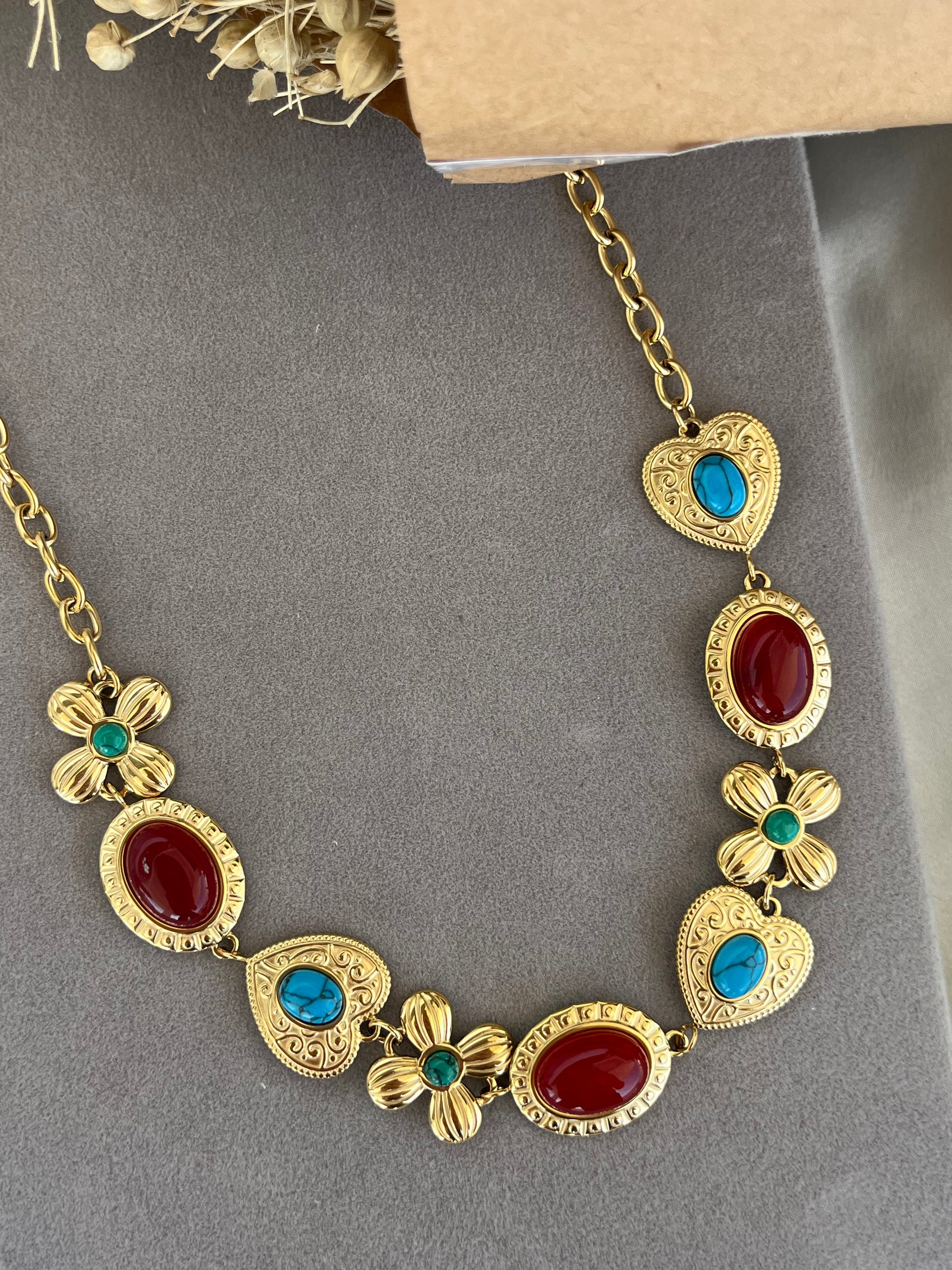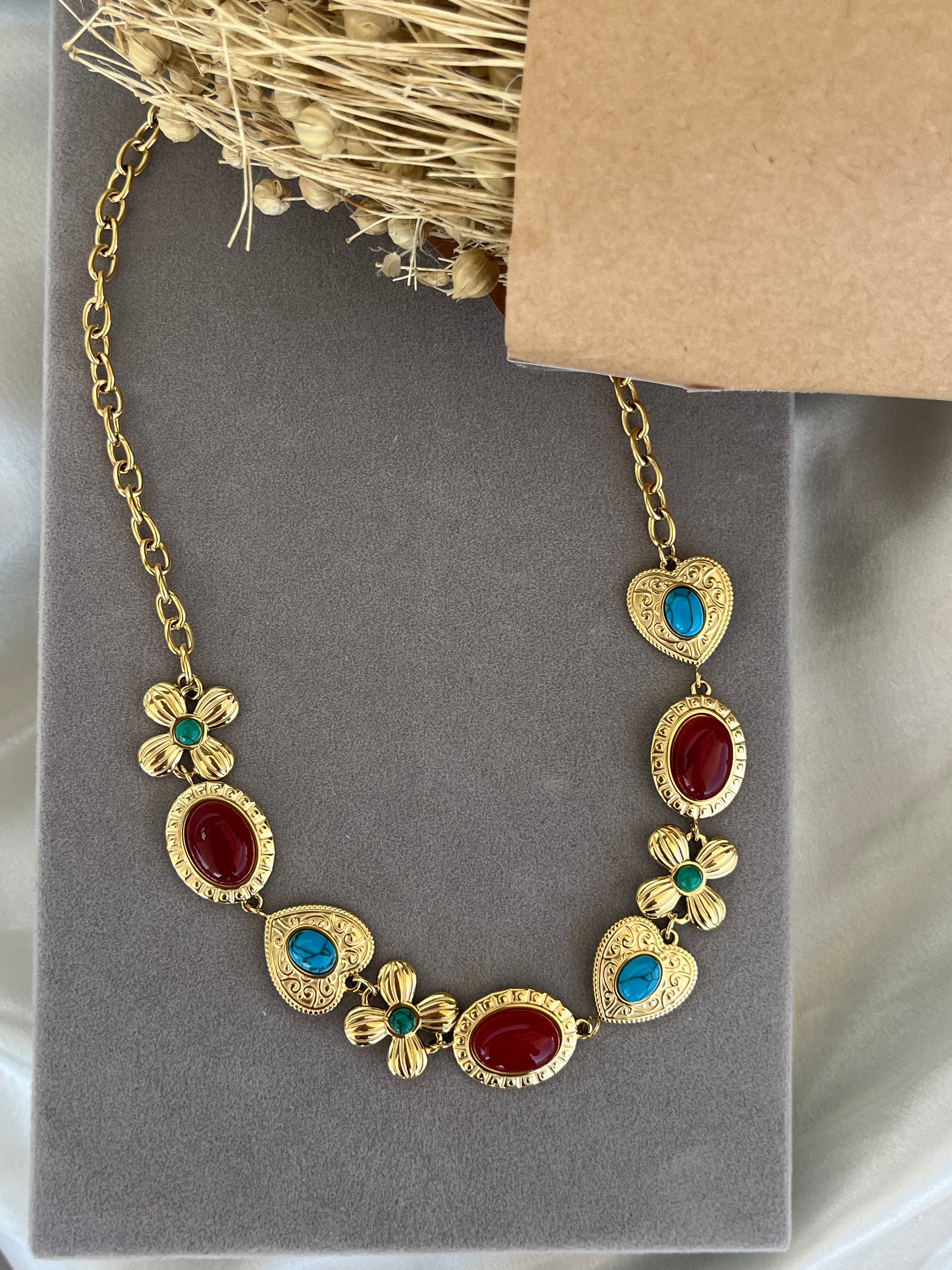 Γυναικείο κολιέ αλυσίδα με charms σε boho στυλ από ανοξείδωτο ατσάλι.