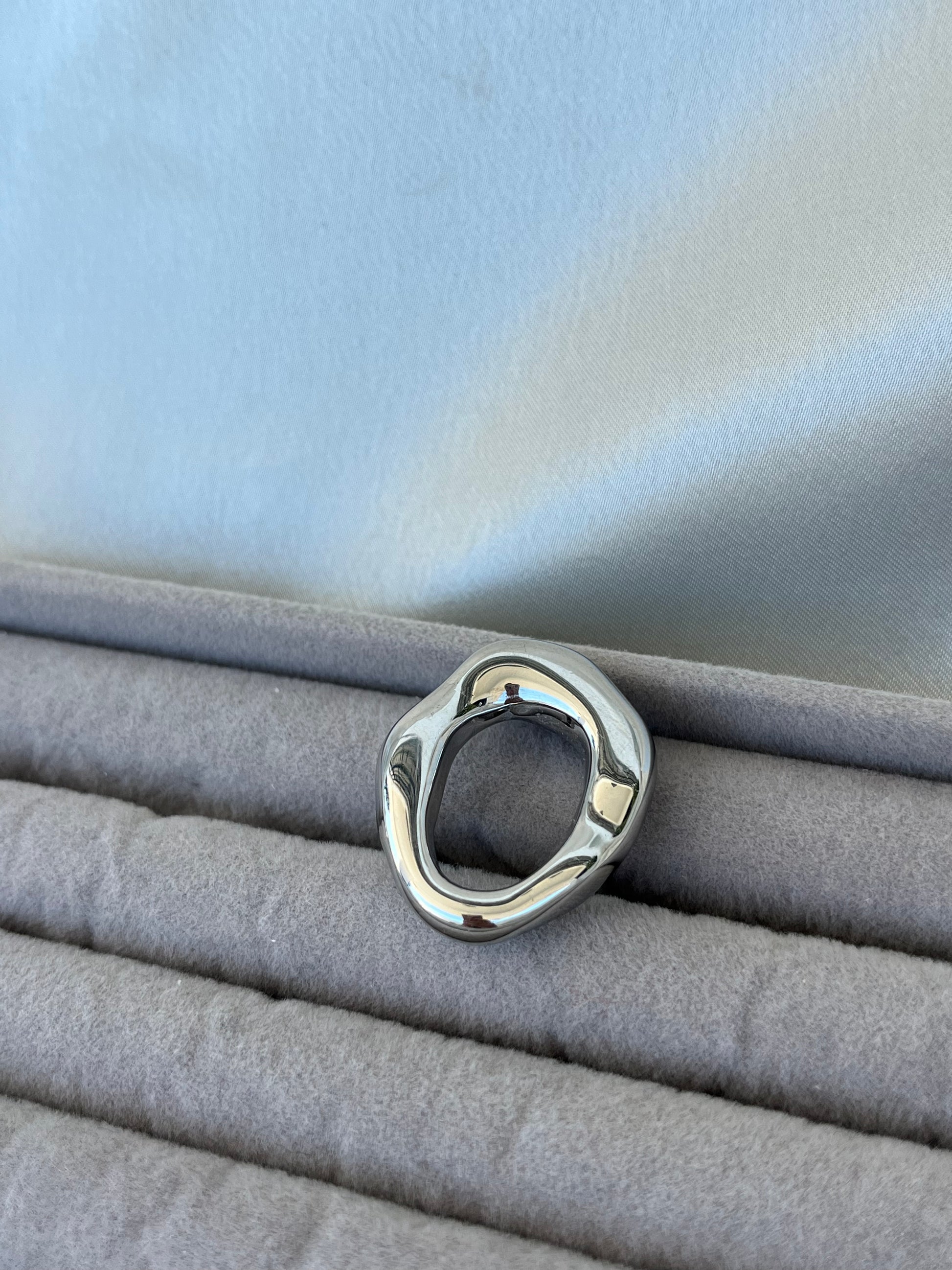 Γυναικείο δαχτυλίδι σε σχήμα ακανόνιστου κύκλου από ανοξείδωτο ατσάλι με δυνατότητα αυξομείωσης.