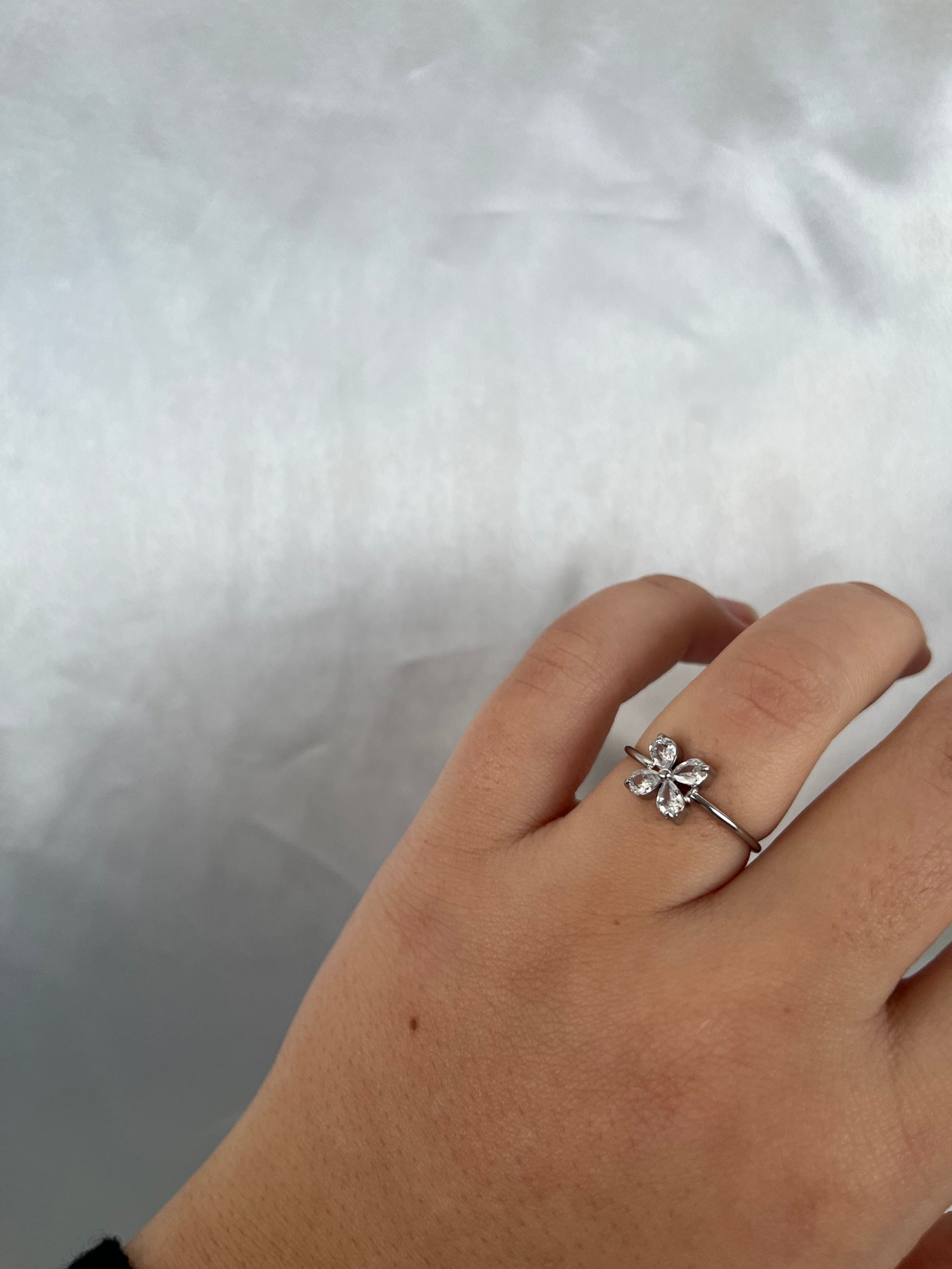 Γυναικείο δαχτυλίδι από ανοξείδωτο ατσάλι διακοσμημένο με πέτρες ζιργκόν σε σχήμα πεταλούδας.