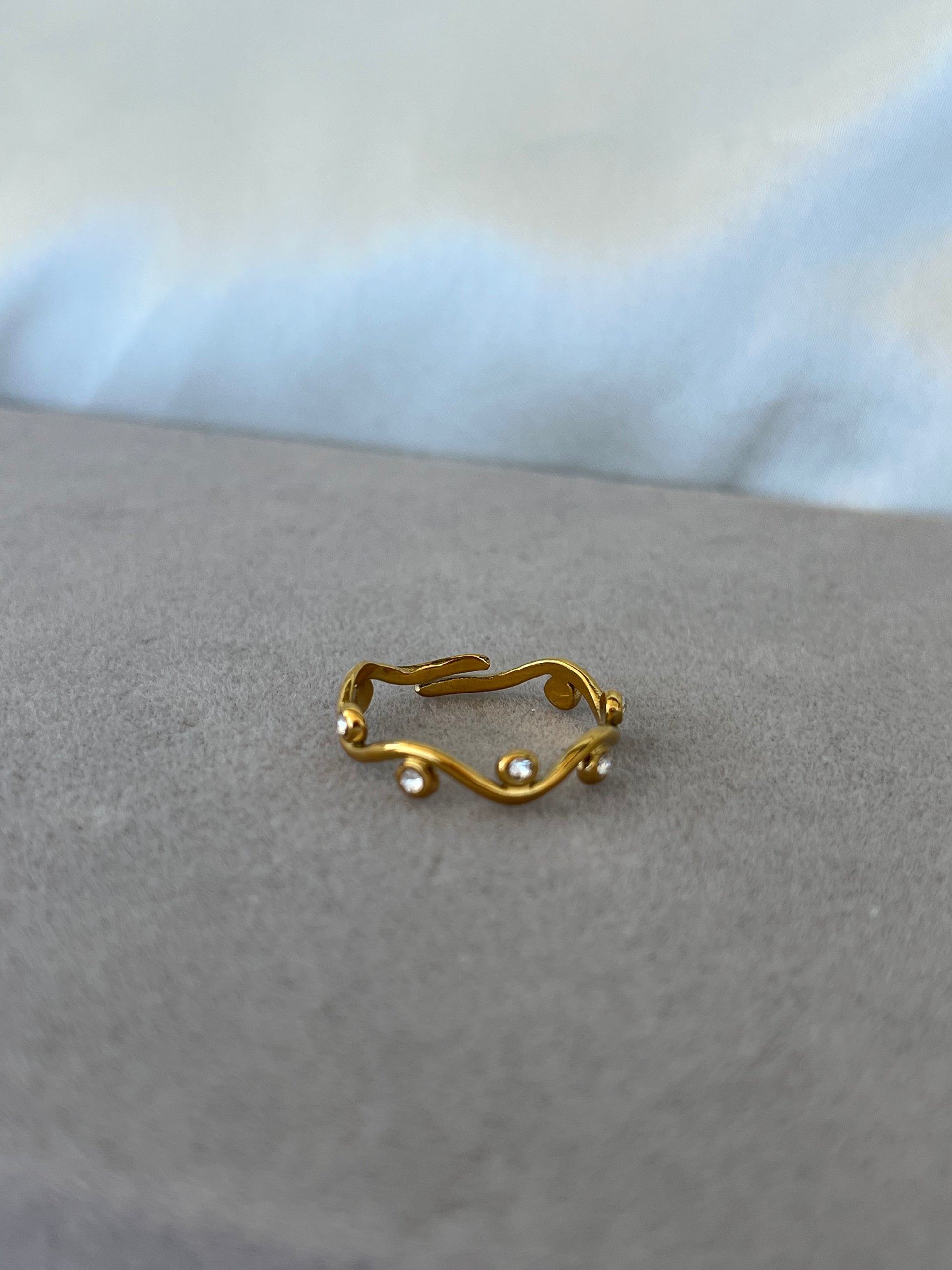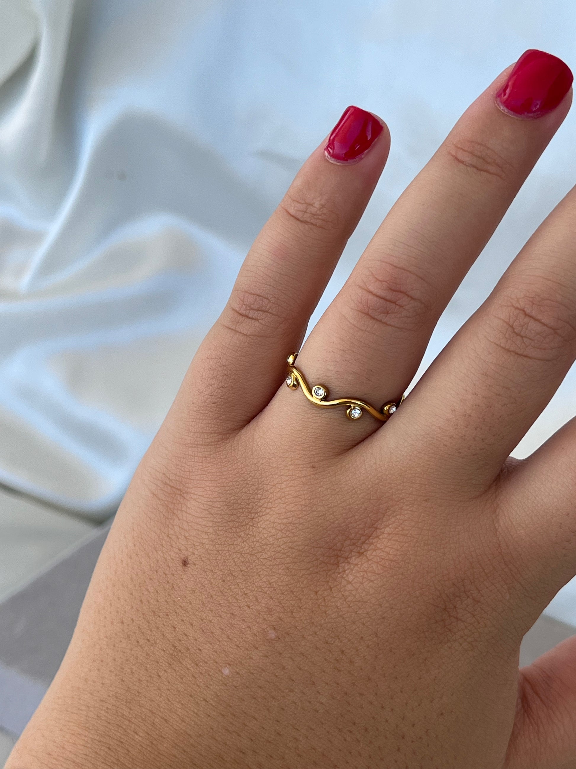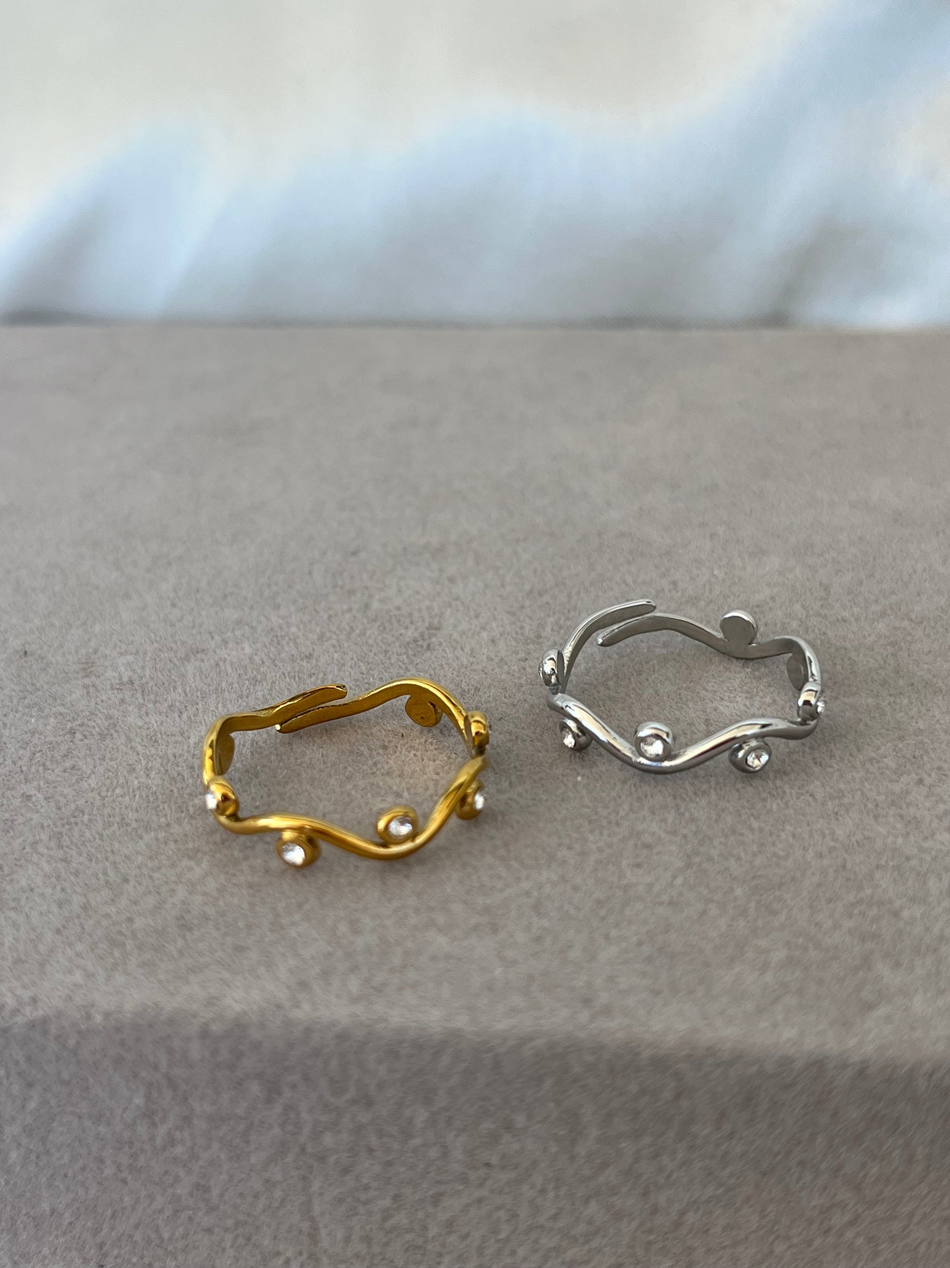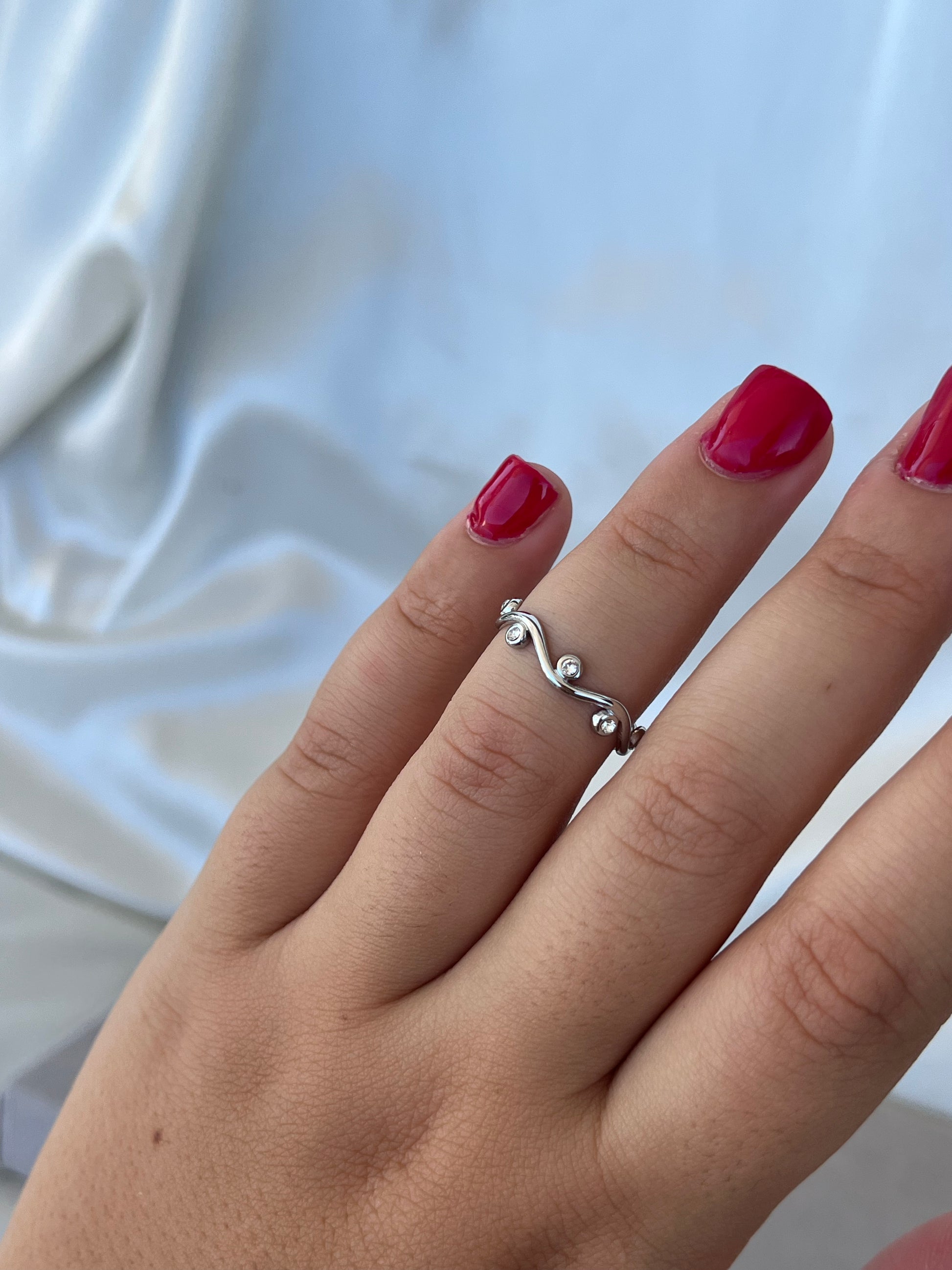 Γυναικείο δαχτυλίδι με κυματιστό σχέδιο και ζιργκόν από ανοξείδωτο ατσάλι και δυνατότητα αυξομείωσης.