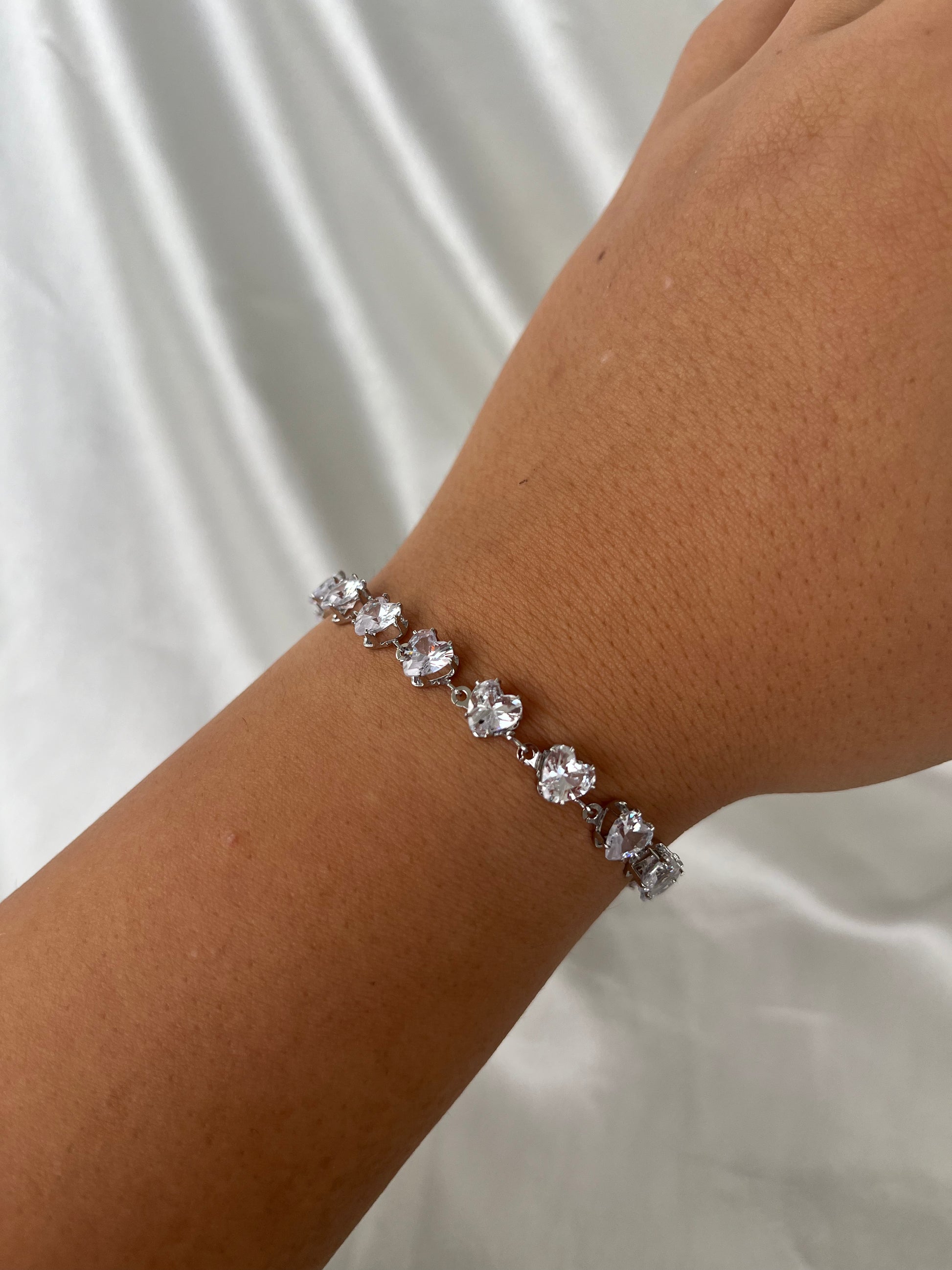 Γυναικείο βραχιόλι με πέτρες σε σχήμα καρδιάς από ανοξείδωτο ατσάλι για να μην μαυρίζει.