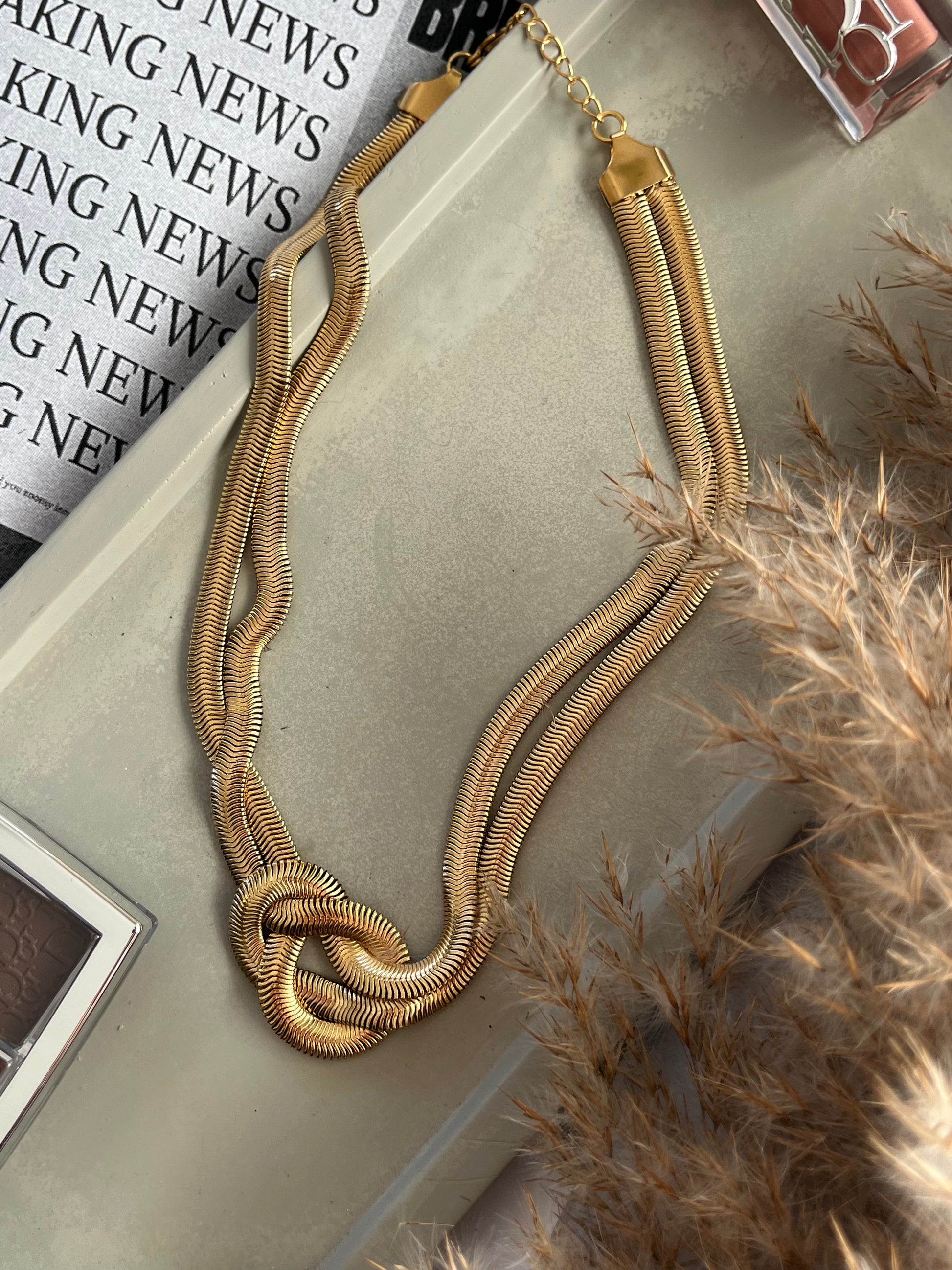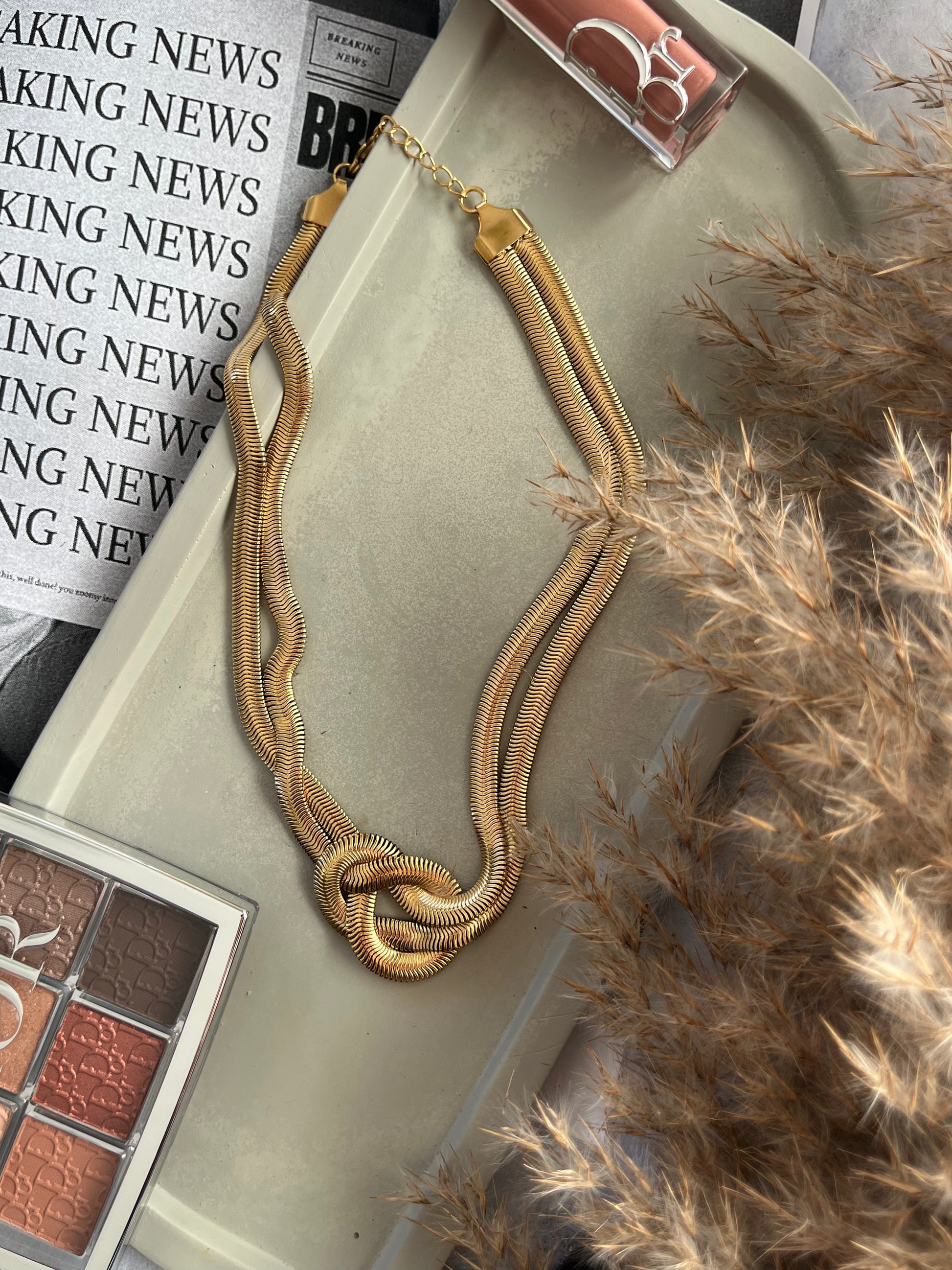 Γυναικείο κολιέ αλυσίδα τύπου φίδι με σχέδιο κόμπου μπροστά, από ανοξείδωτο ατσάλι.