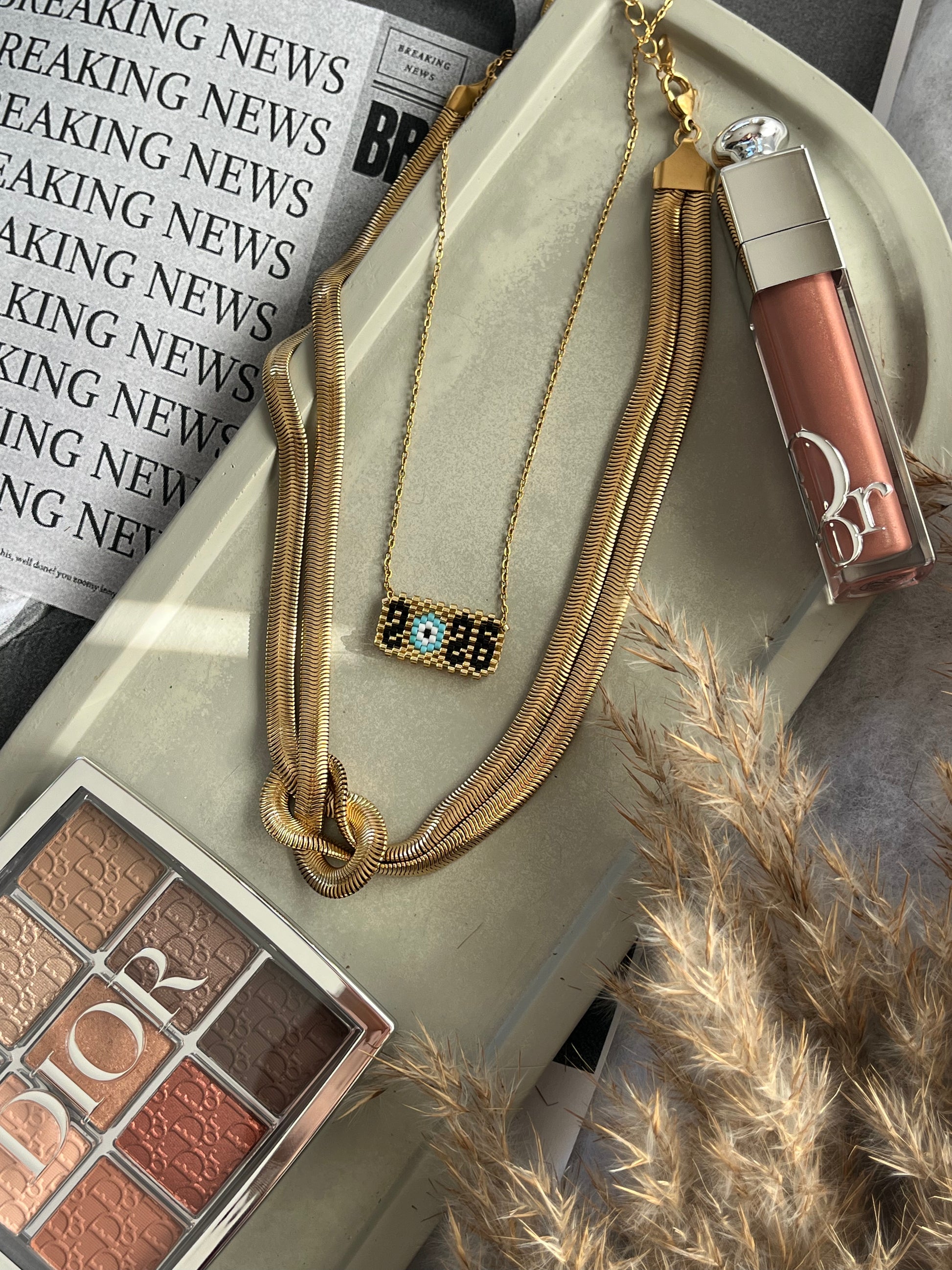 Δεν πρόκειται για την συνηθισμένη αλυσίδα-φίδι αλλά για ένα πιο ιδιαίτερο σχέδιο που μπορεί να φορεθεί από το πρωί μέχρι το βράδυ μόνο του ή σε συνδυασμό με άλλα κολιέ.