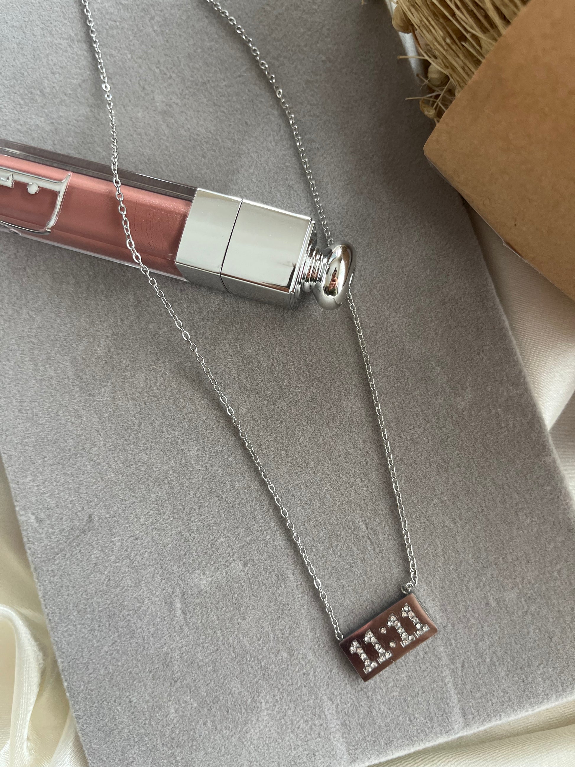 Γυναικείο κολιέ με επιγραφή αριθμών και ζιργκόν από ανοξείδωτο ατσάλι.