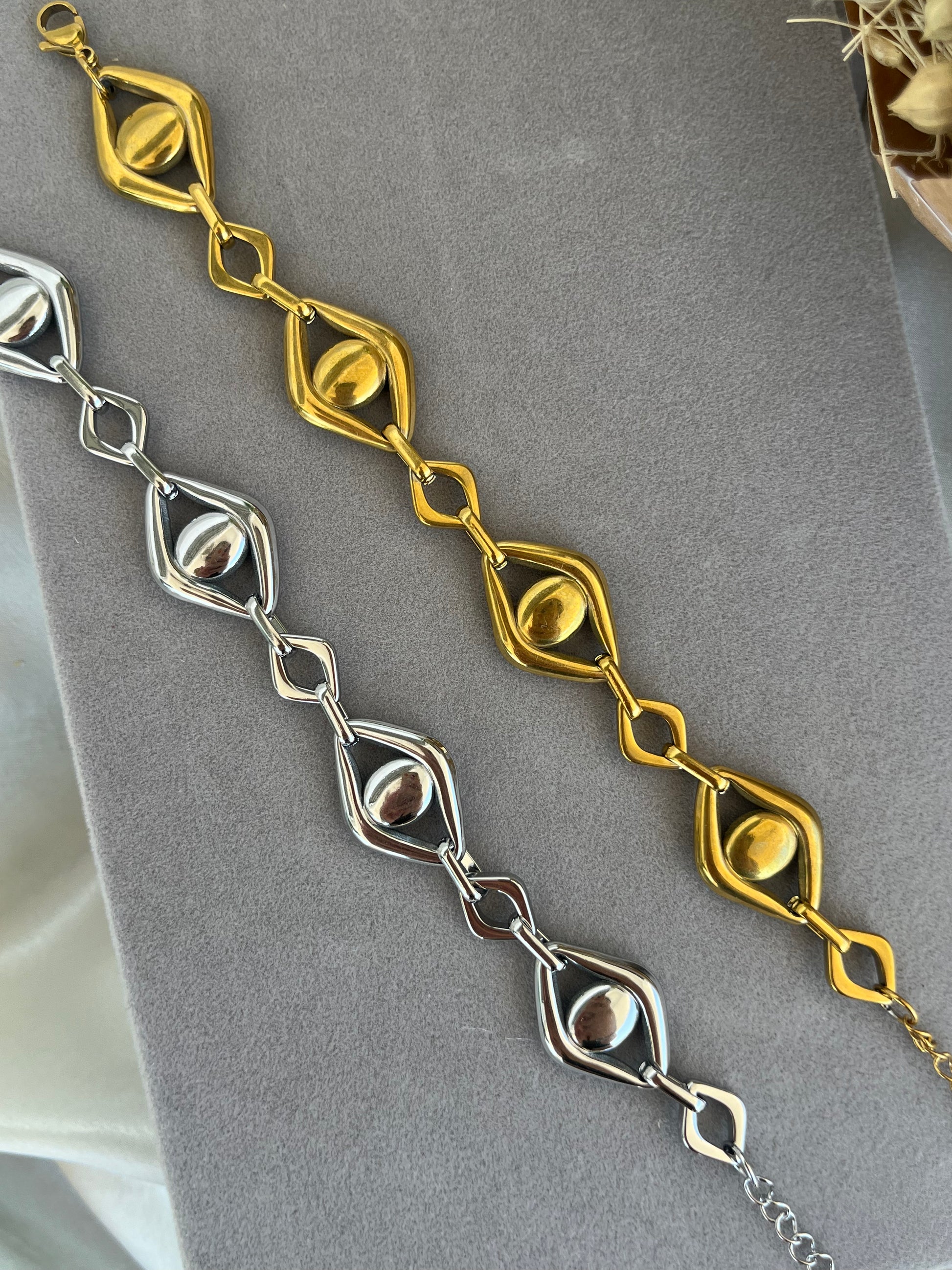 Γυναικείο βραχιόλι με σχέδιο ματάκια από ανοξείδωτο ατσάλι.