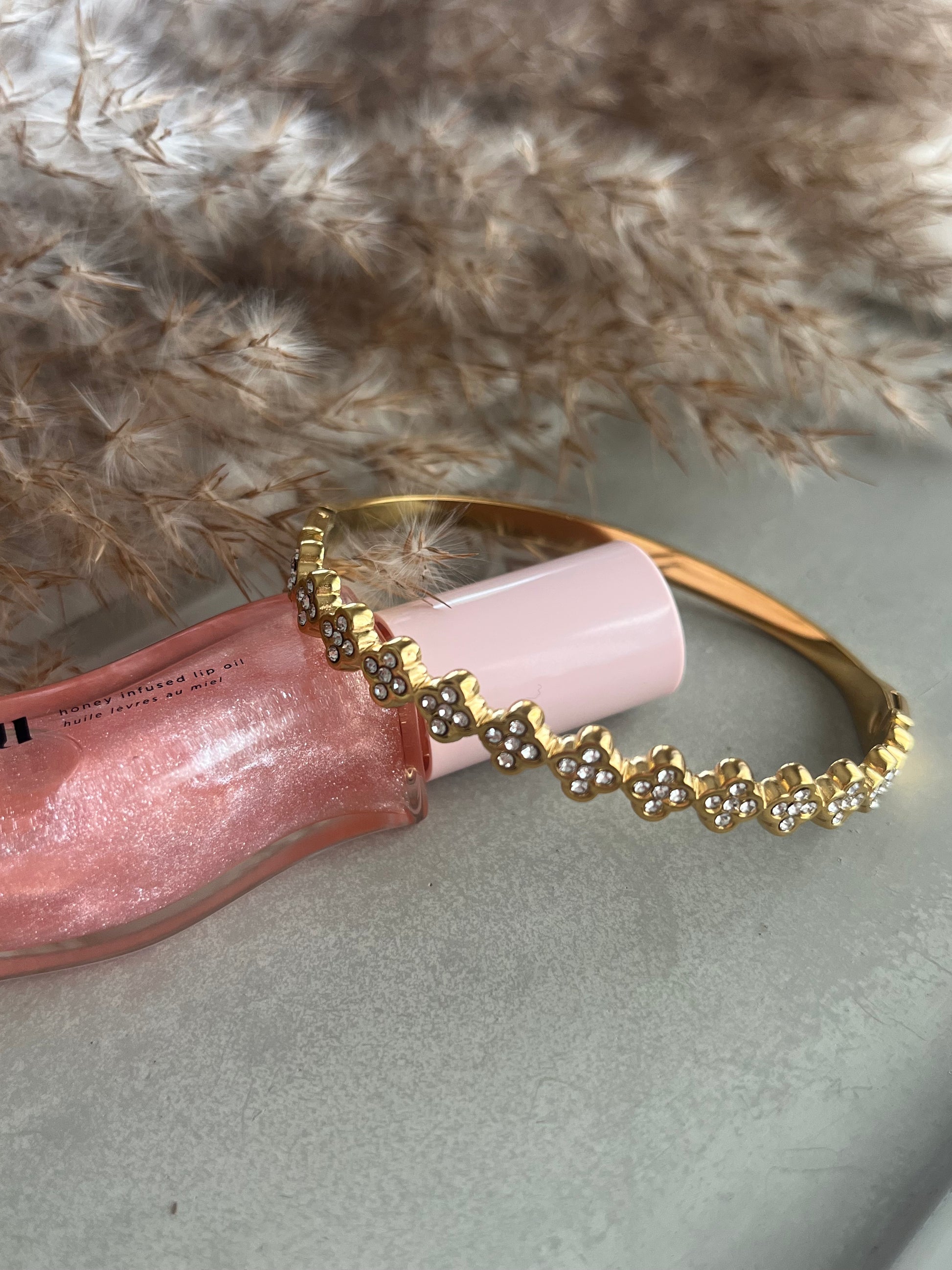 Γυναικεία χειροπέδα βραχιόλι με σχήμα τριφυλλιού διακοσμημένα με ζιργκόν από ανοξείδωτο ατσάλι.