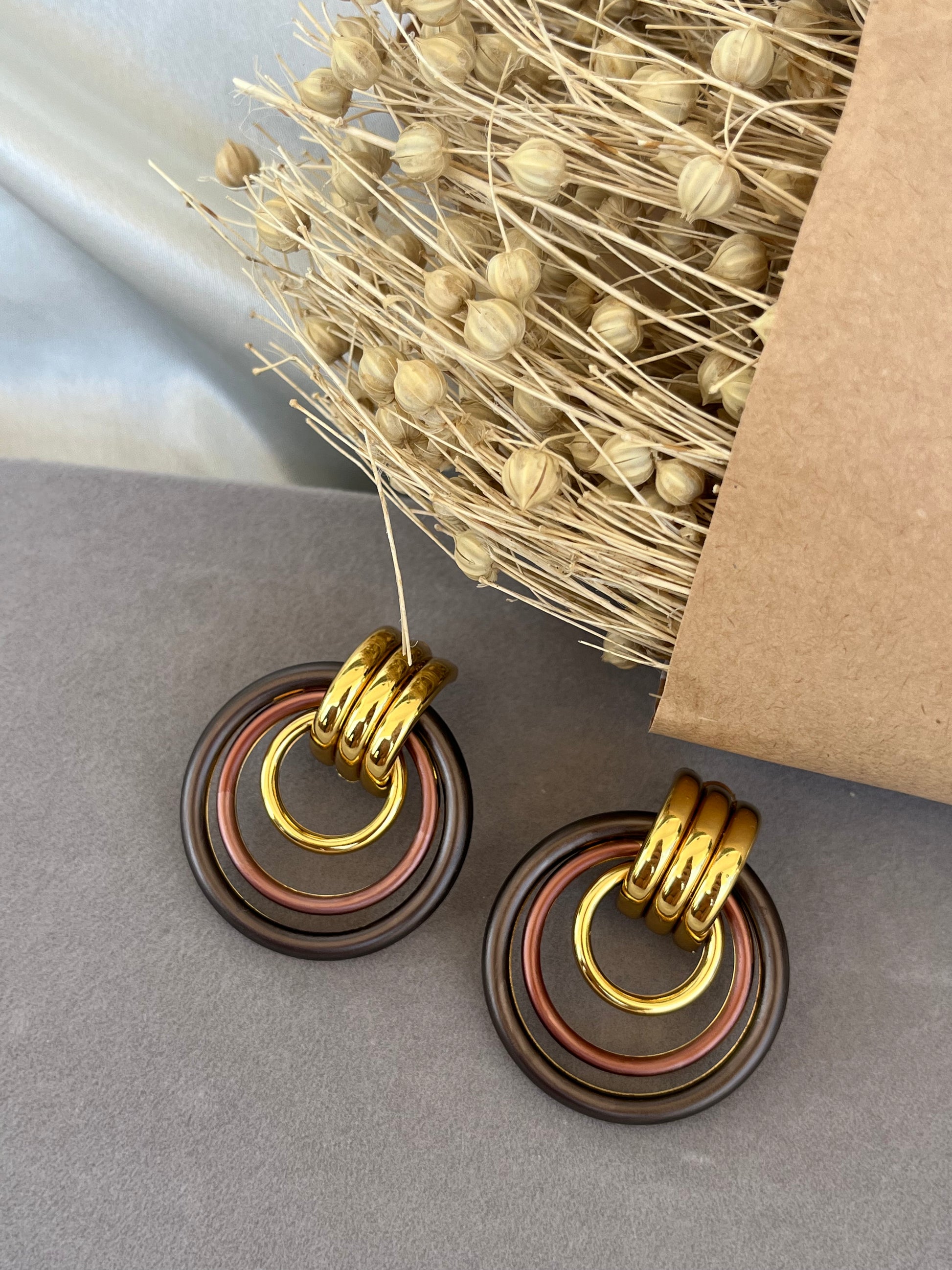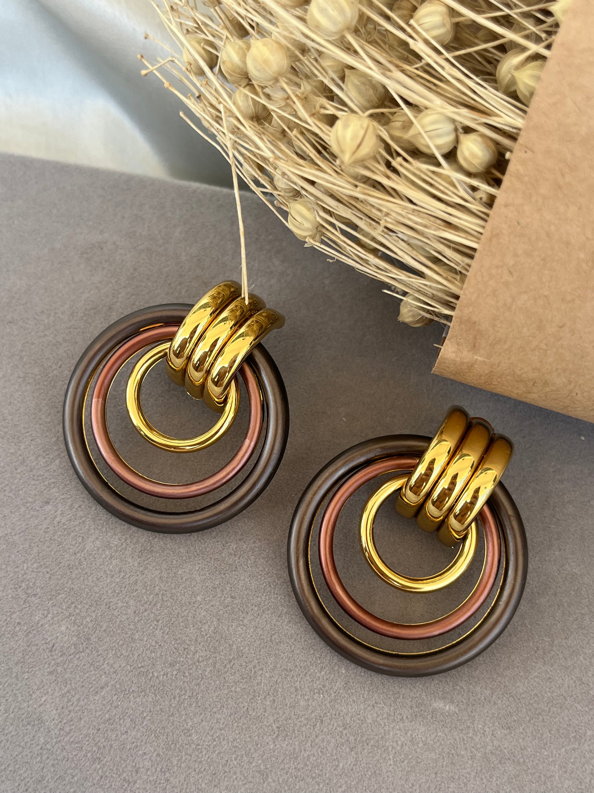 Γυναικεία σκουλαρίκια καρφωτά με κυκλικό σχέδιο από ανοξείδωτο ατσάλι με τριχρωμία χρωμάτων.