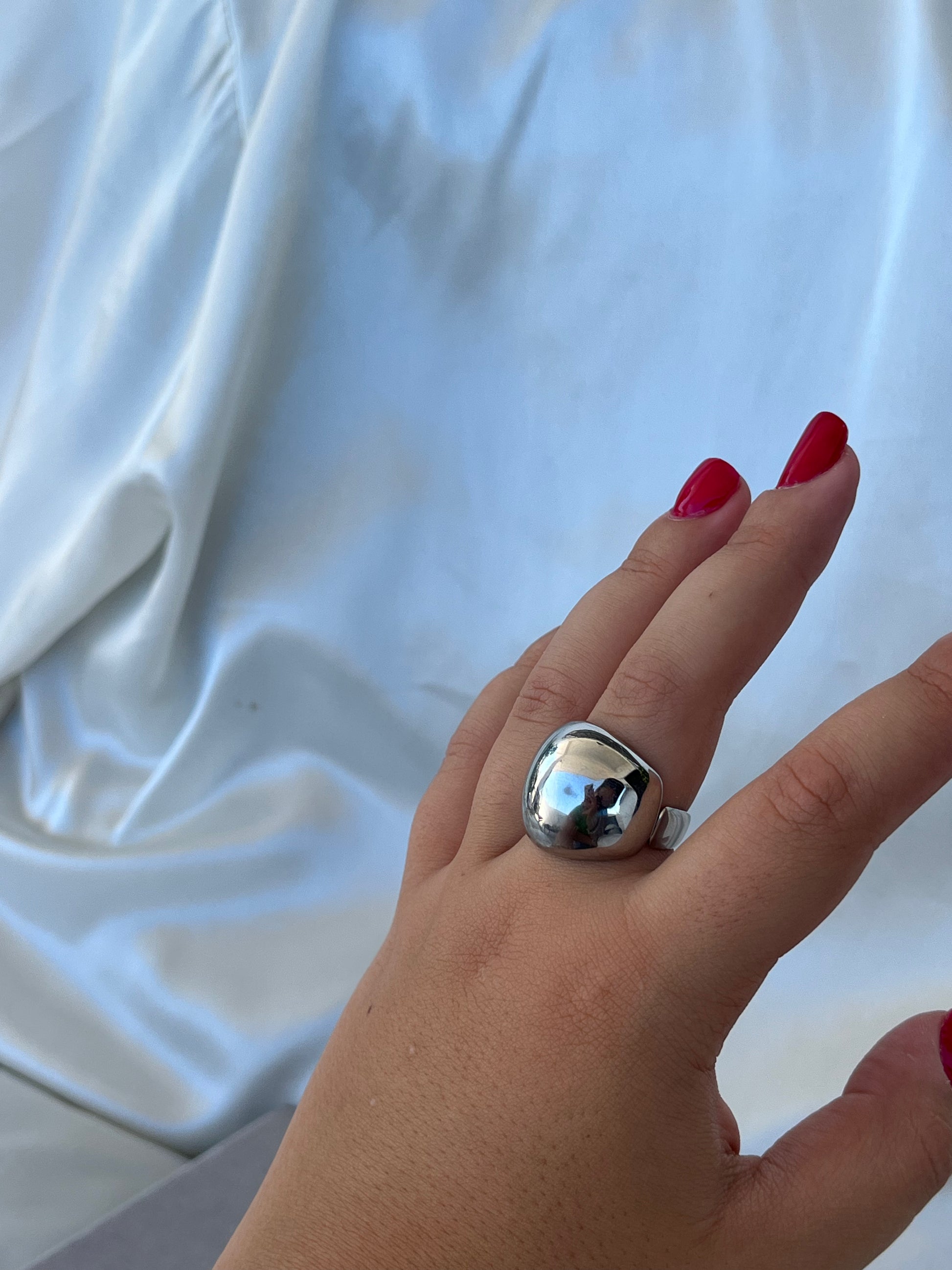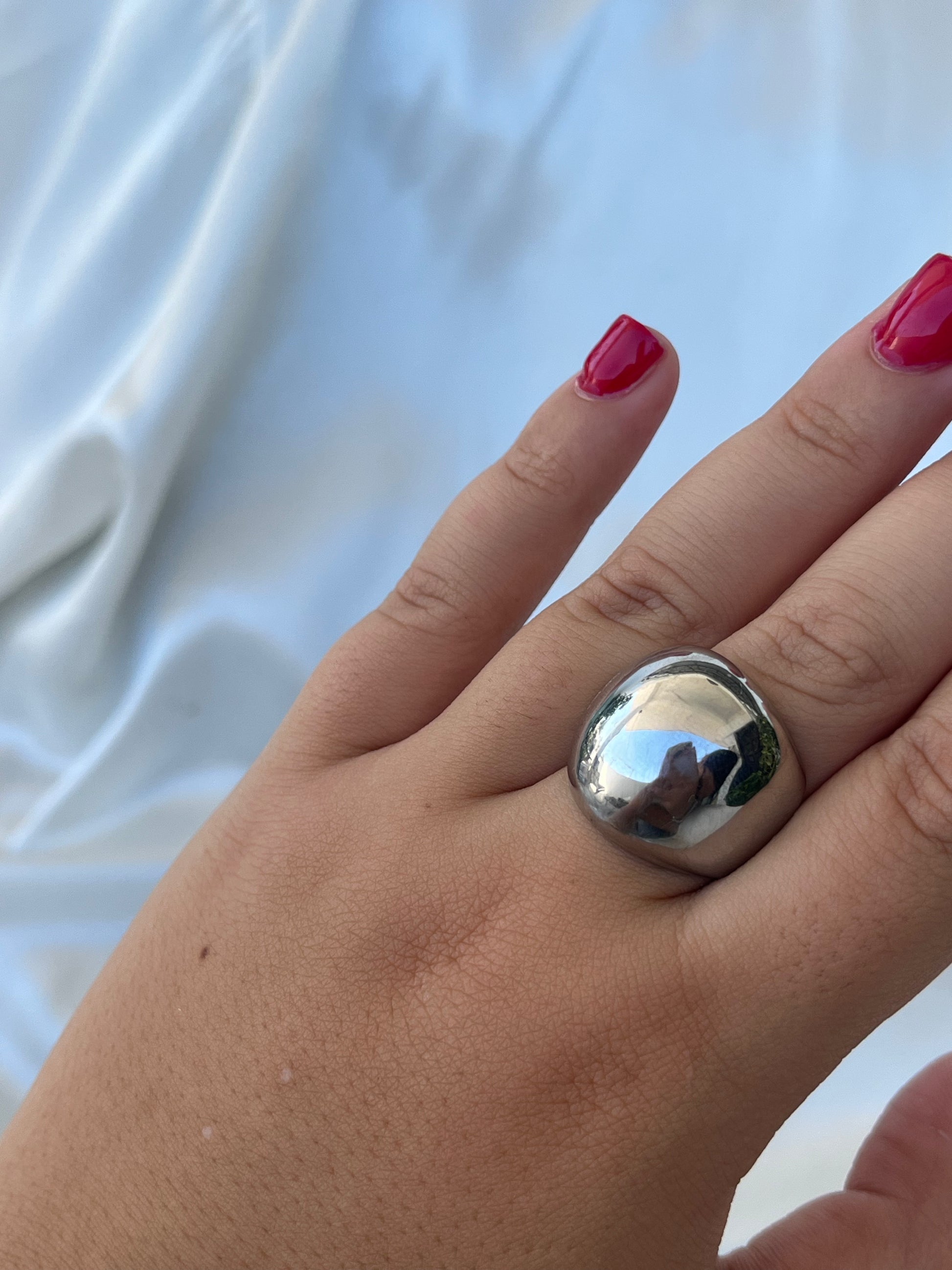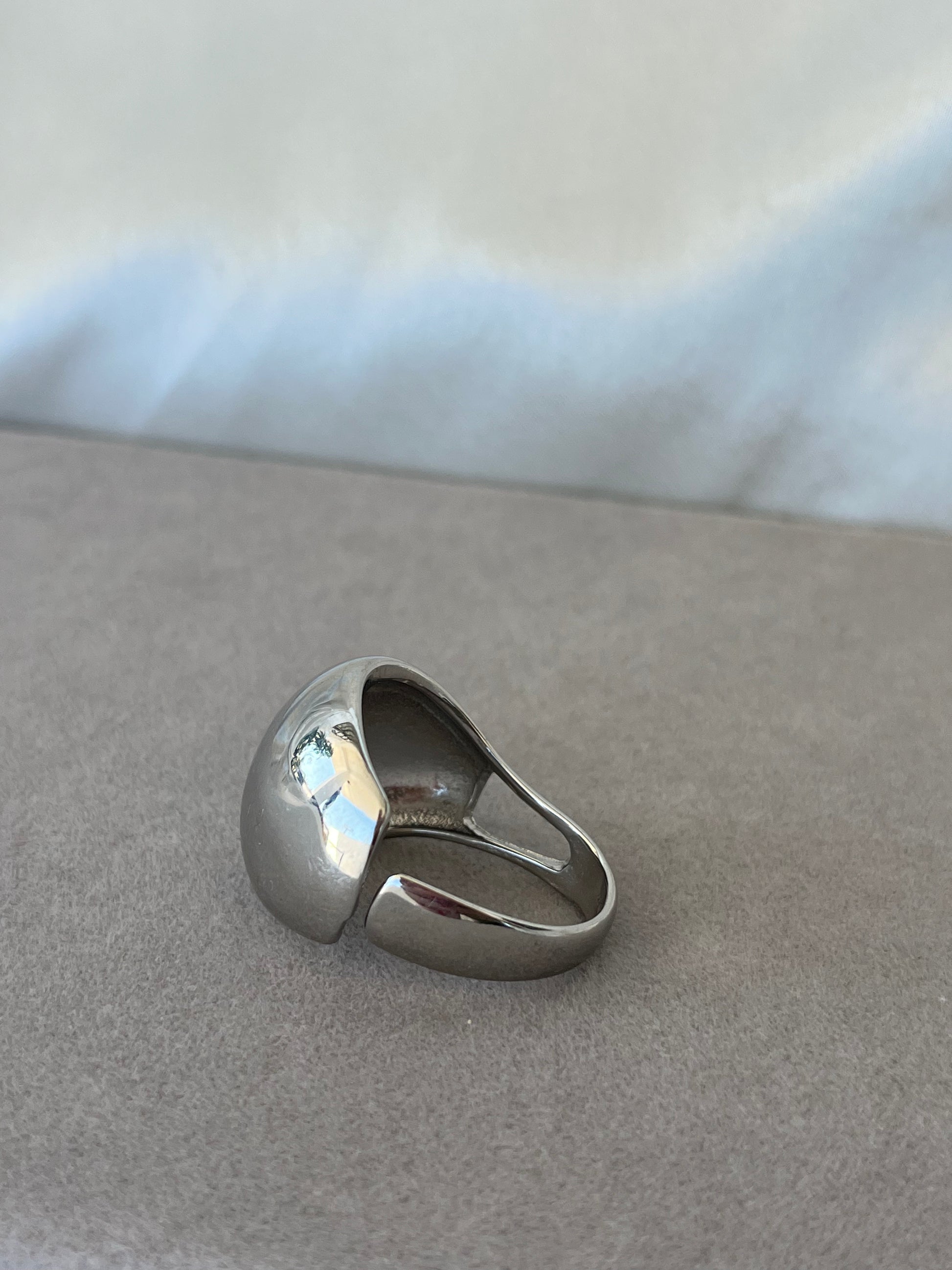 Γυναικείο δαχτυλίδι τύπου μπίλια σε μεγάλο μέγεθος από ανοξείδωτο ατσάλι, με δυνατότητα αυξομείωσης.