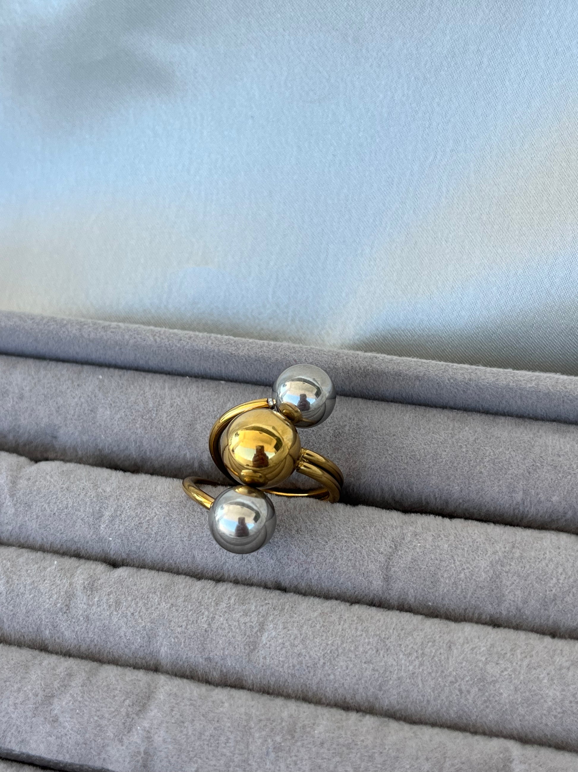 Δαχτυλίδι Ατσάλινο Statement Δίχρωμο με Μπίλιες 'Zamora'
