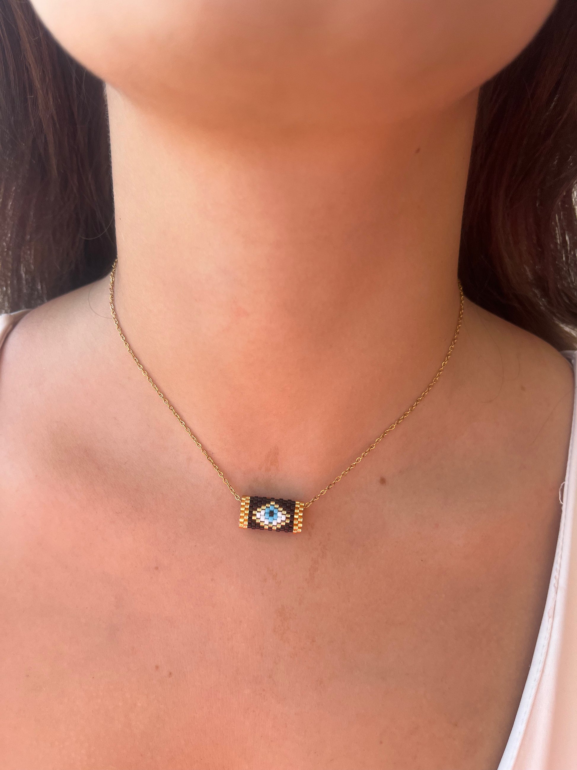 Κολιέ Ατσάλινο Κεντητό με Ματάκι 'Summer Eye'