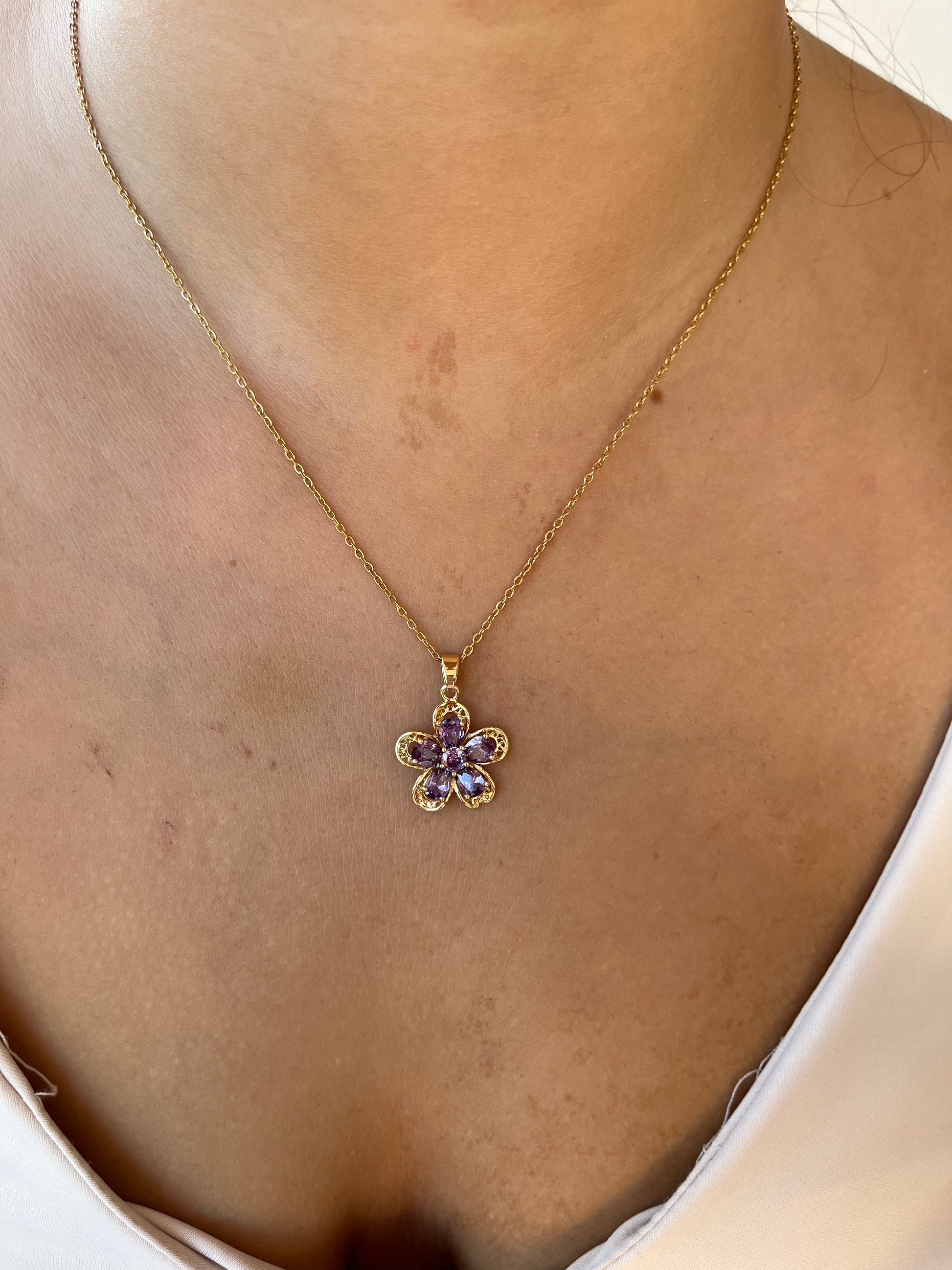 Γυναικείο κολιέ σε σχήμα λουλουδιού με ζιργκόν από ανοξείδωτο ατσάλι.