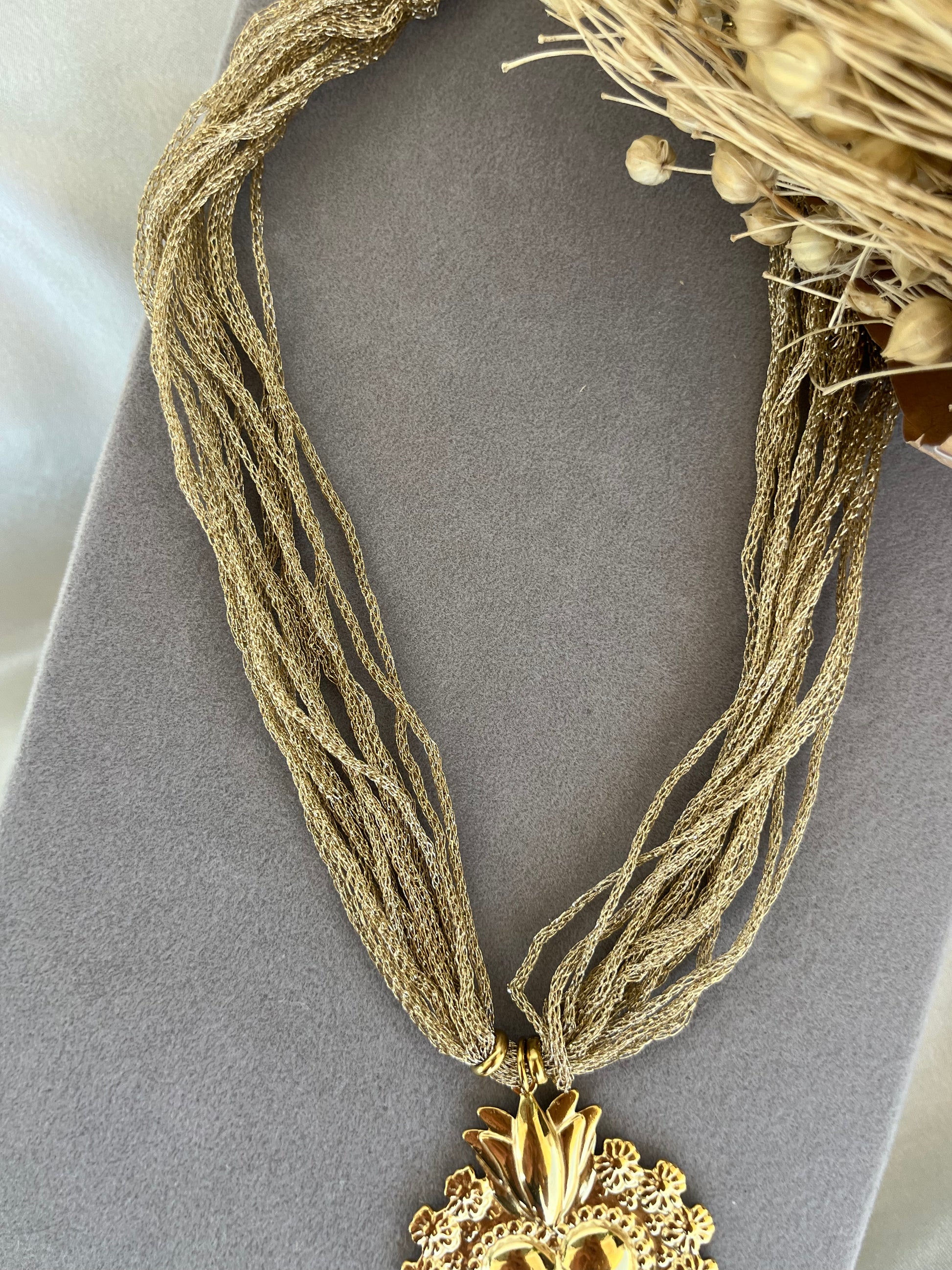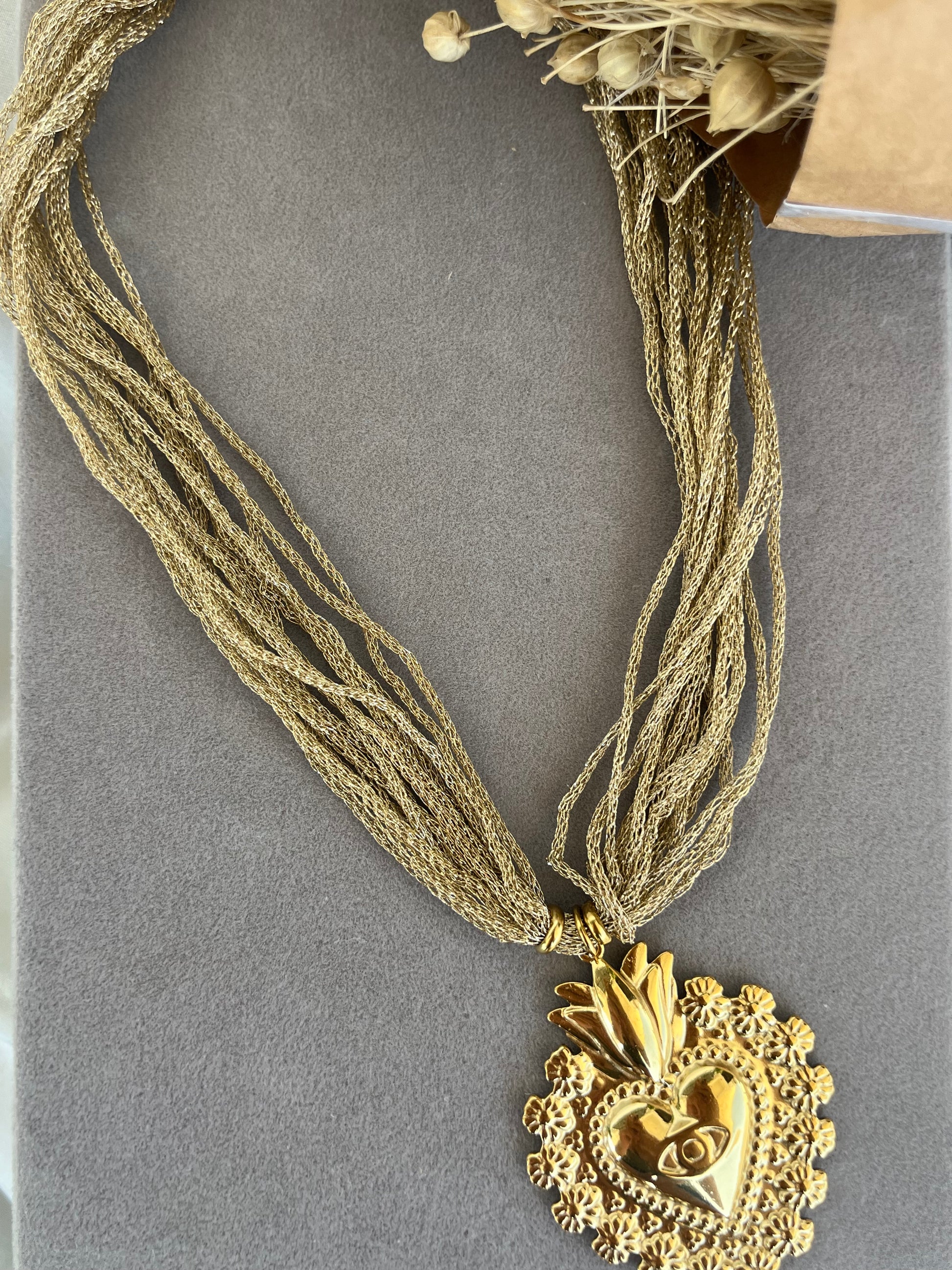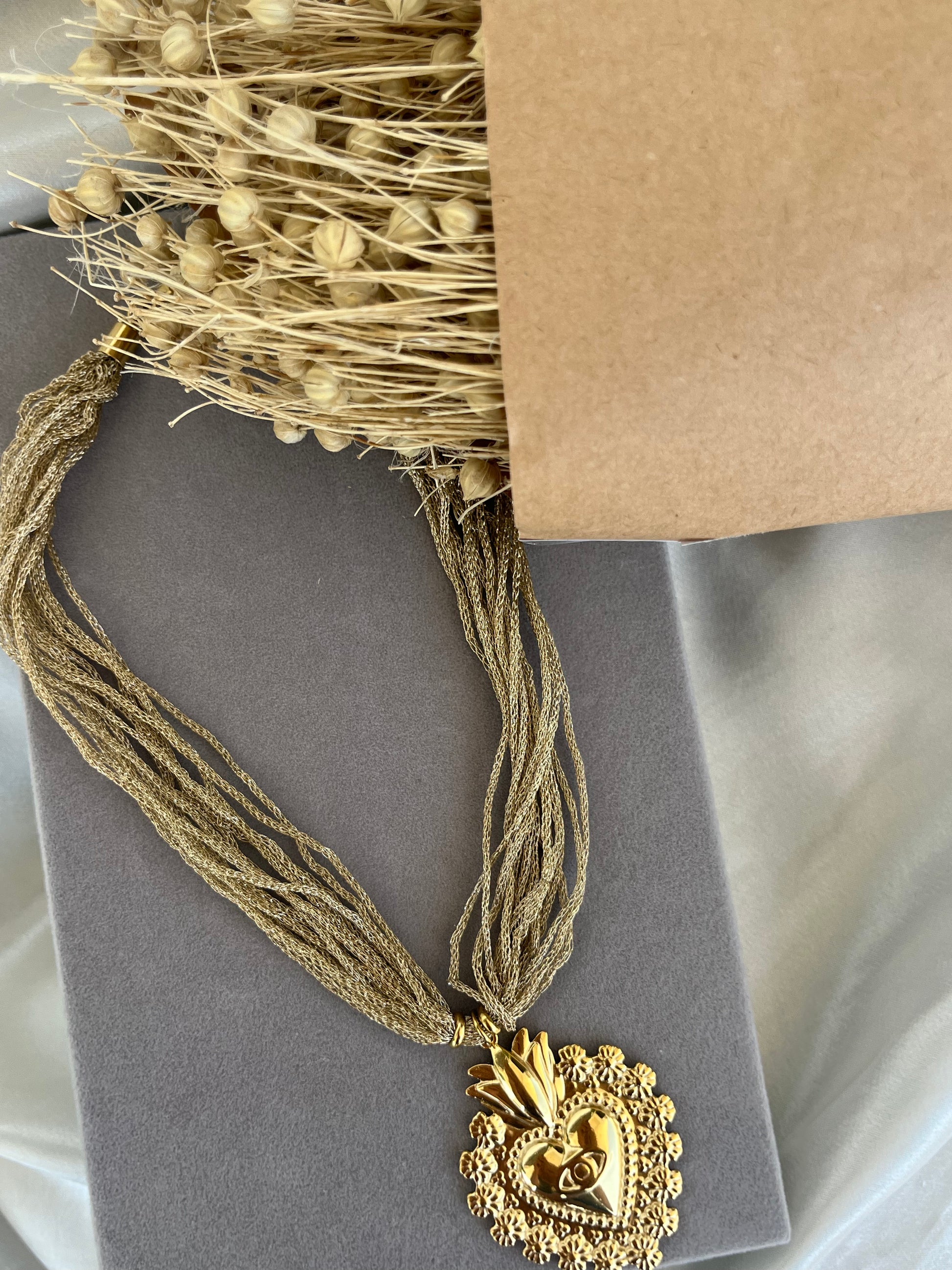Γυναικείο κολιέ με χρυσή κλωστή και charm από ανοξείδωτο ατσάλι σε σχέδιο καρδιάς.