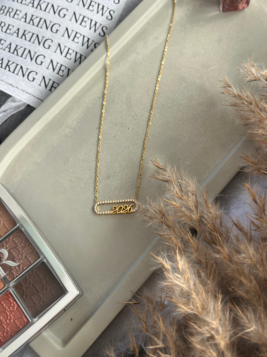 Κολιέ Ατσάλινο Αλυσίδα Γούρι με Ζιργκόν 'Pin 2026'